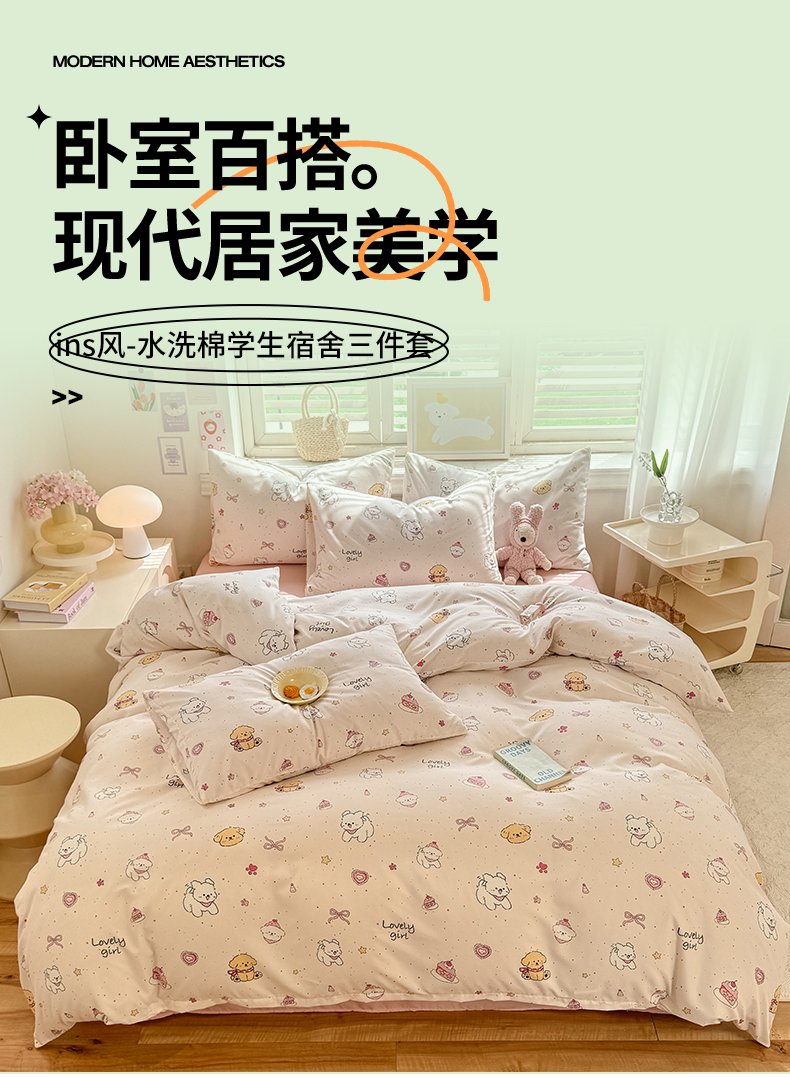 当前位置: 91家纺网 > 商品网购 > 床品套件 > 三件套 > 多品家纺 2025新款ins风水洗棉学生宿舍三件套 蛋糕狗