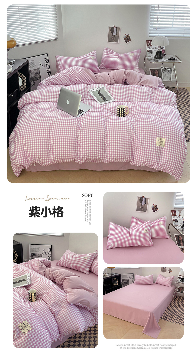 (总)优尚佳生活馆 2025新款无印风亲肤磨毛四件套-格子