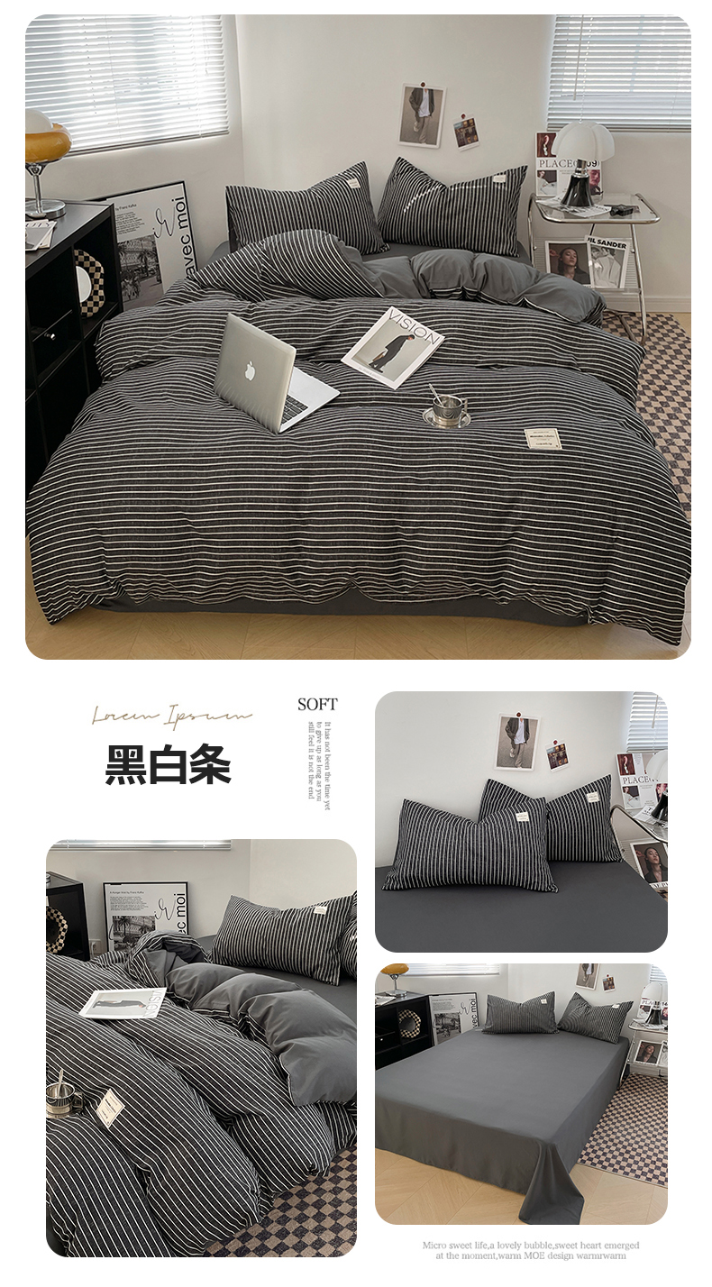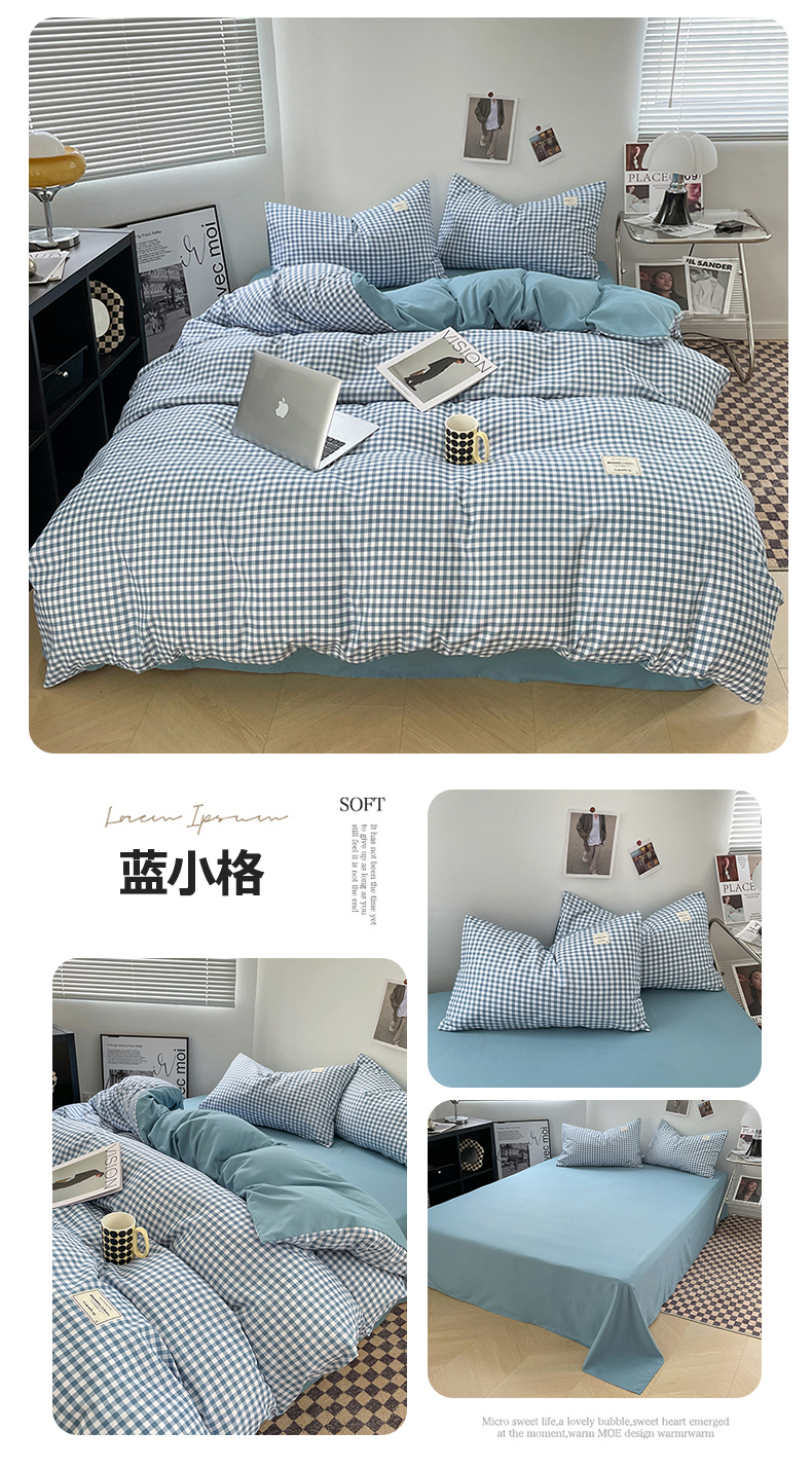 商品名称:(总)优尚佳生活馆 2025新款无印风亲肤磨毛四件套-格子