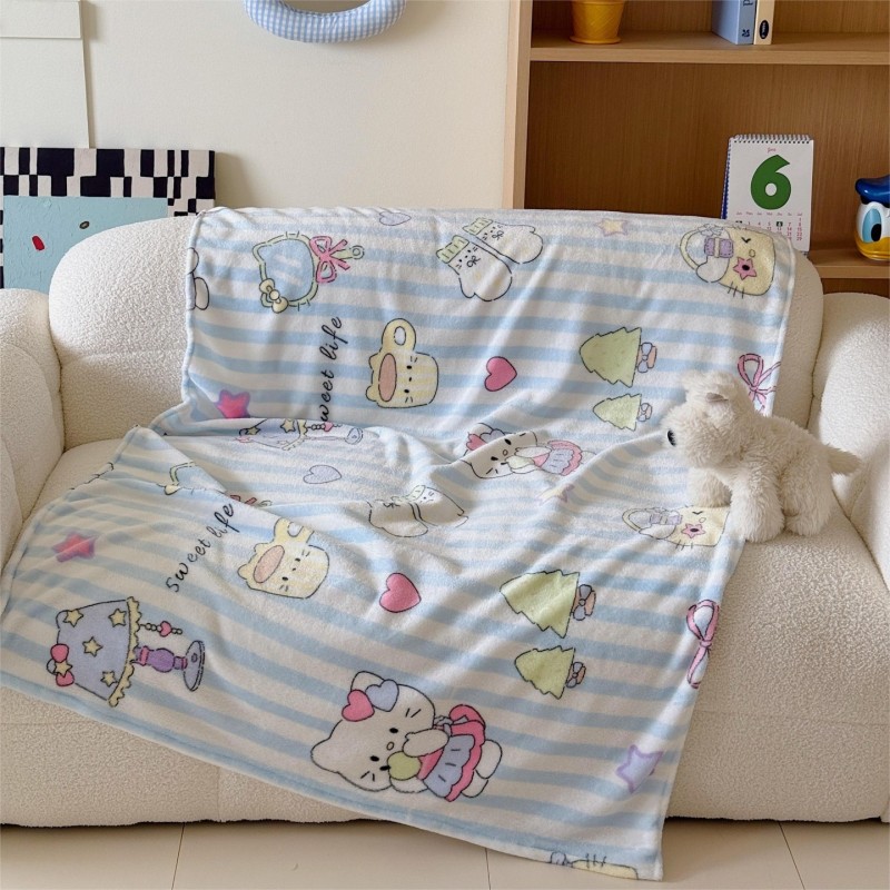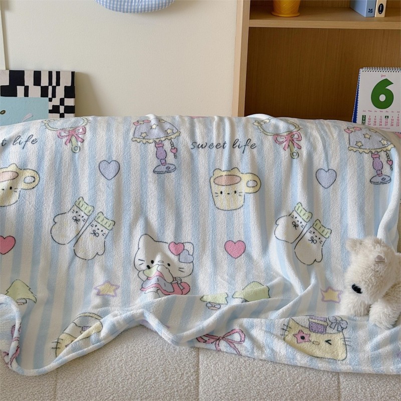 顾里家纺 2025新款ins少女奶油系双面牛奶绒毯-第二组 漫画猫咪