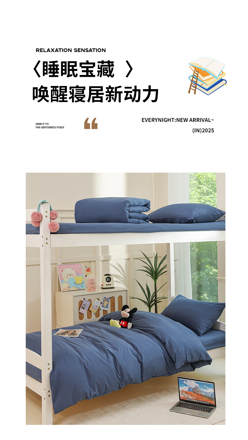 当前位置: 91家纺网 > 商品网购 > 床品套件 > 三件套 > 柠萌家居 2025新款无印良品风色织水洗棉A类学生宿舍三件套 宝石蓝