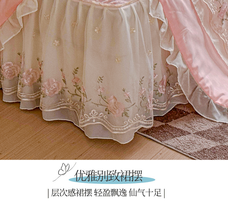 (总)漫布云 2025新款230g高克重韩版立体盘花牛奶蚕丝绒绣花四件套床裙款被套-洛丽塔系列,洛丽塔-嫩黄 ,洛丽塔-香芋紫,洛丽塔-珍珠粉, 洛丽塔-婴儿蓝