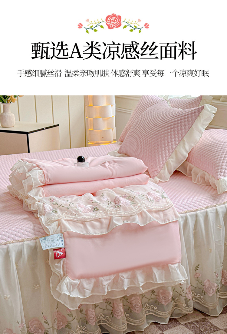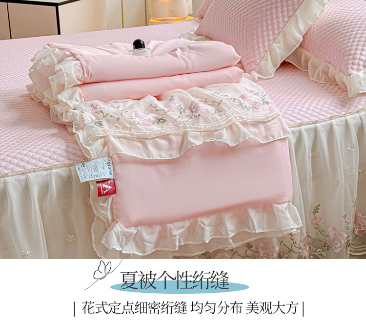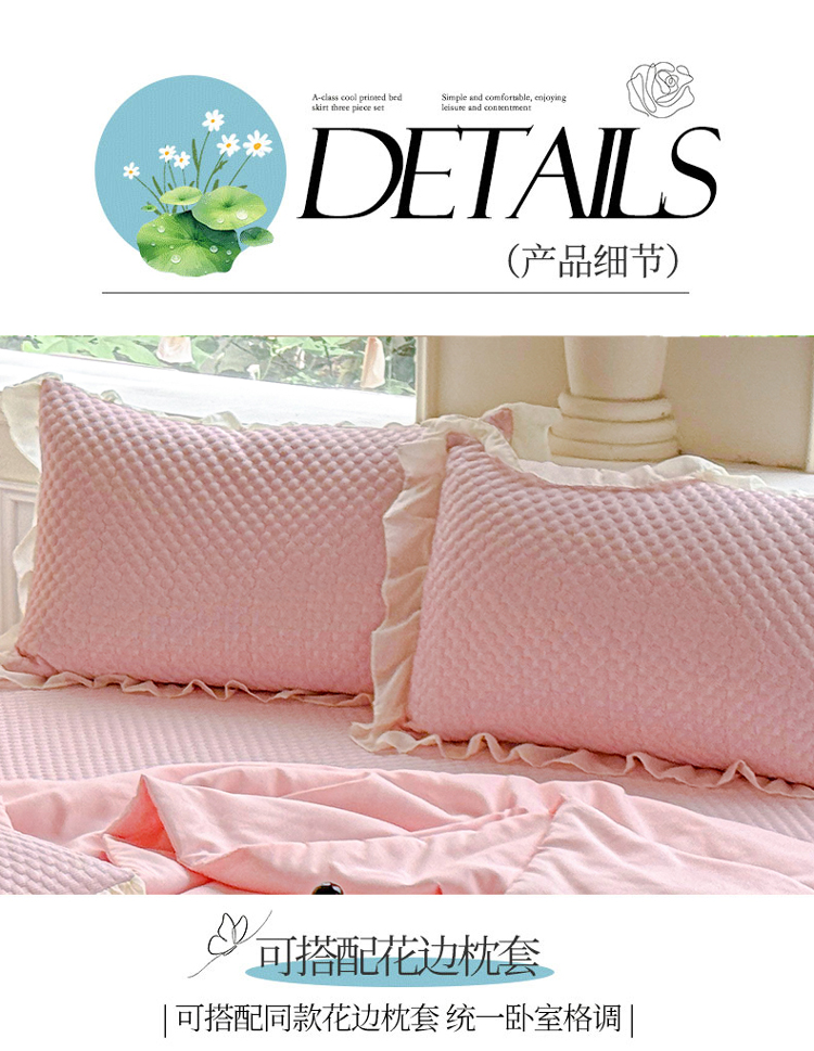 商品名称:漫布云2025新款A类甄选PE凉感丝花边床裙款冰豆豆凉席床盖三件套春夏韩版公主风水洗棉蕾丝夏被 梦幻—梦幻蓝