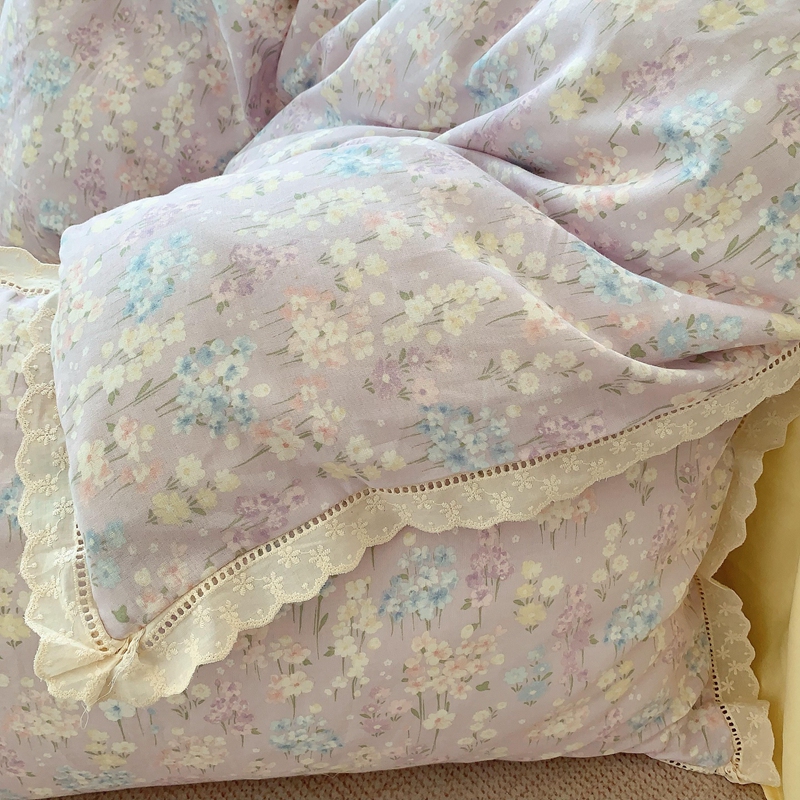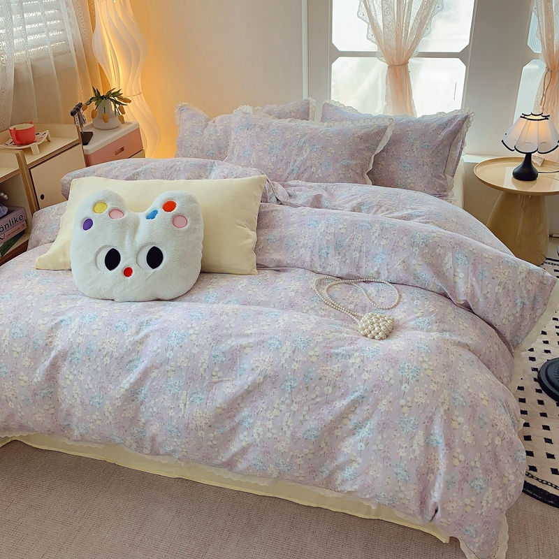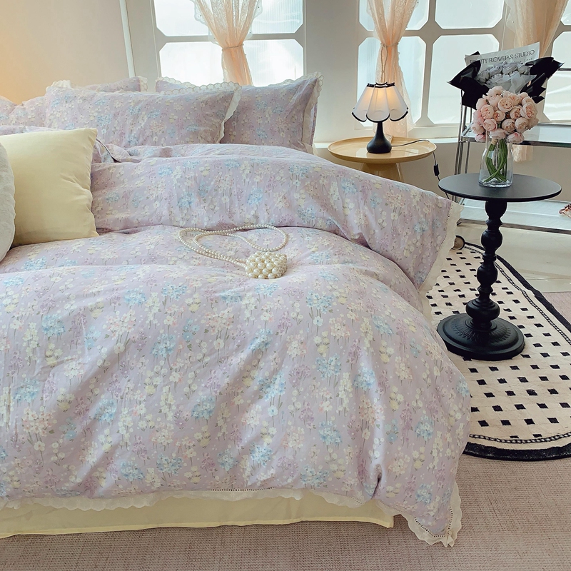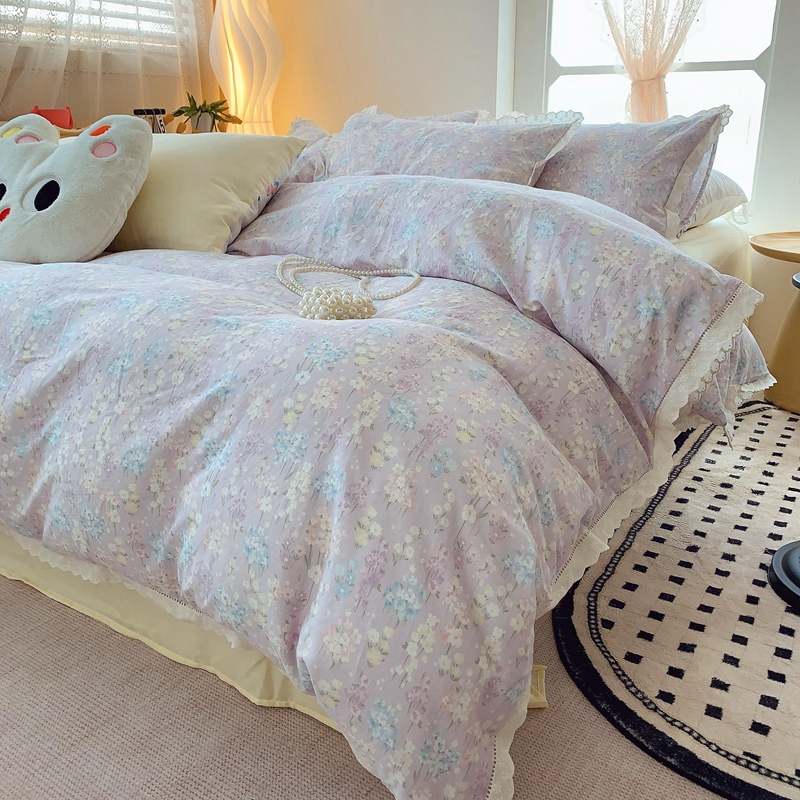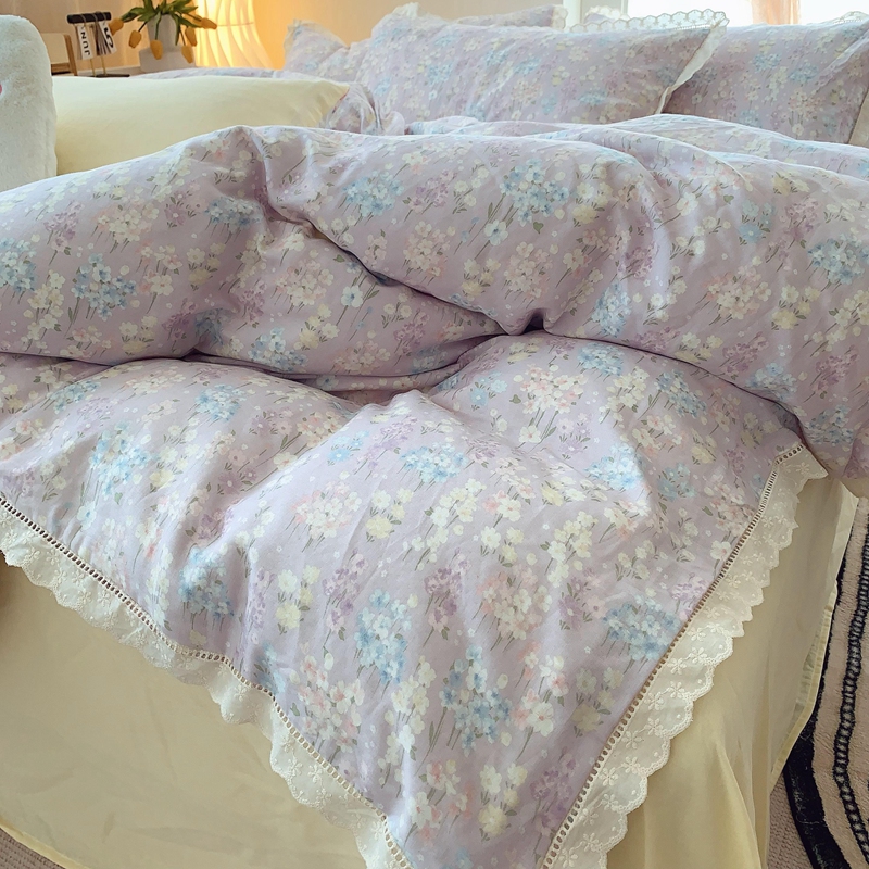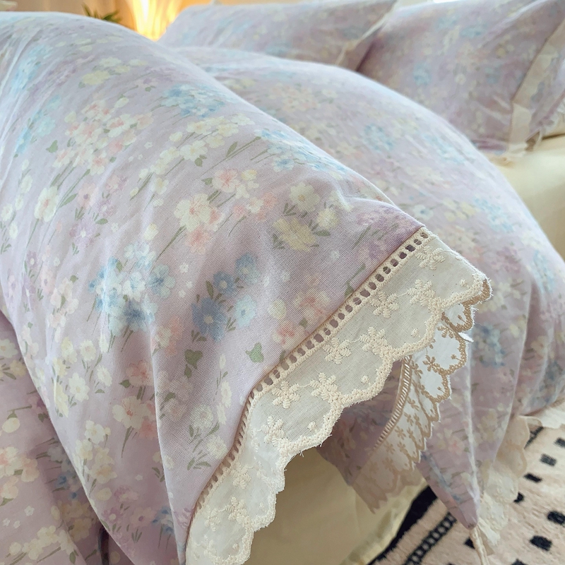 奈萝家纺 2025新款全棉双层纱花边款四件套 花海恋人紫