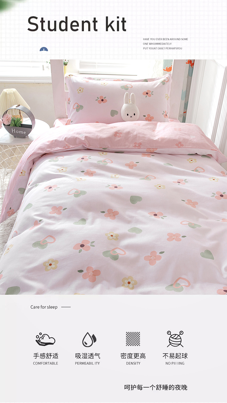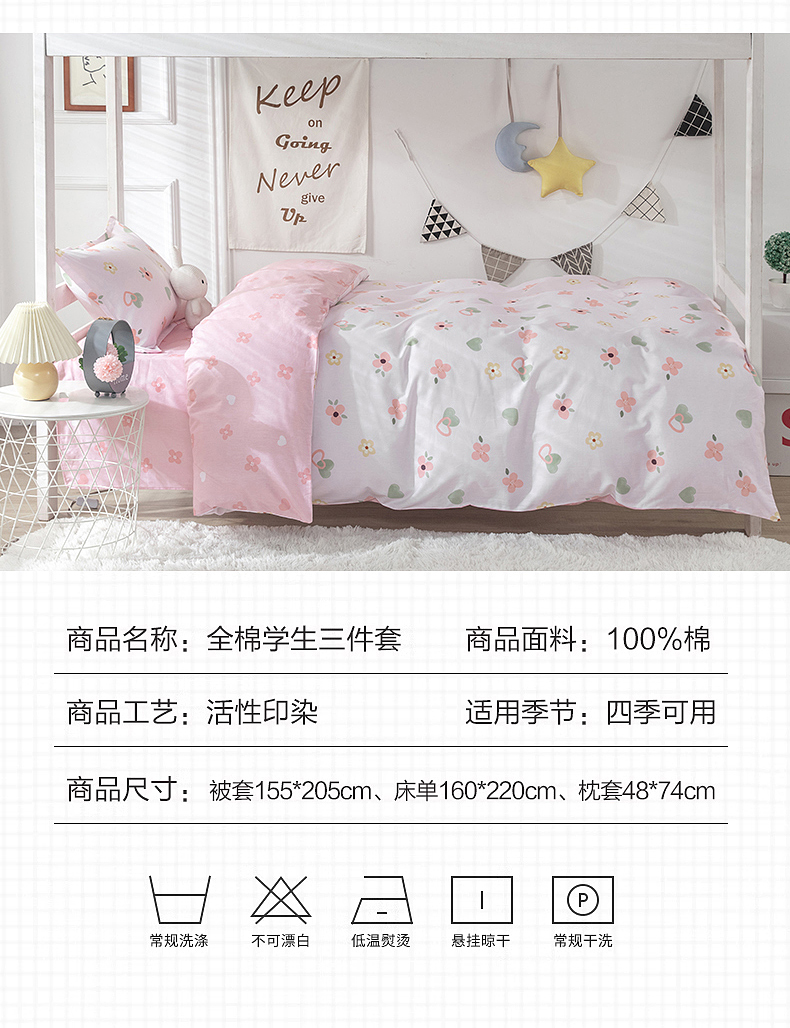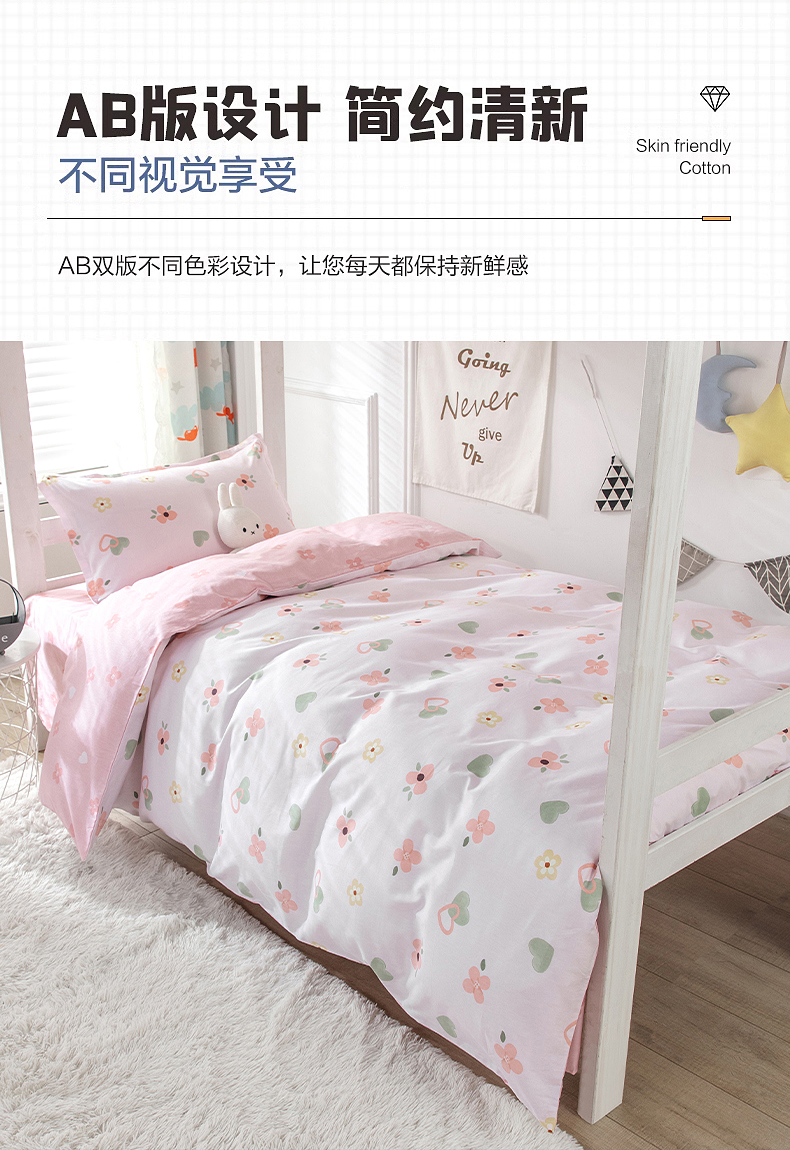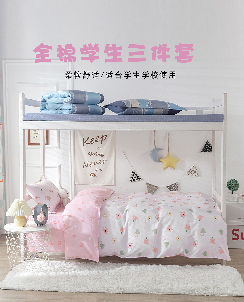 当前位置: 91家纺网 > 商品网购 > 床品套件 > 三件套 > 小叮当家纺仓储工厂店 提供买家秀爆款花型不断货)2025新款全棉AB版13372学生宿舍印花三件套双面纯棉床单款上下铺单人 盎然-粉