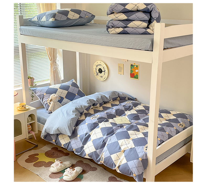 当前位置: 91家纺网 > 商品网购 > 床品套件 > 三件套 > 麦伦家居 2025新款40支13372全棉纯棉斜纹学生上下铺床品宿舍三件套上下铺四件套系列 英伦格蓝