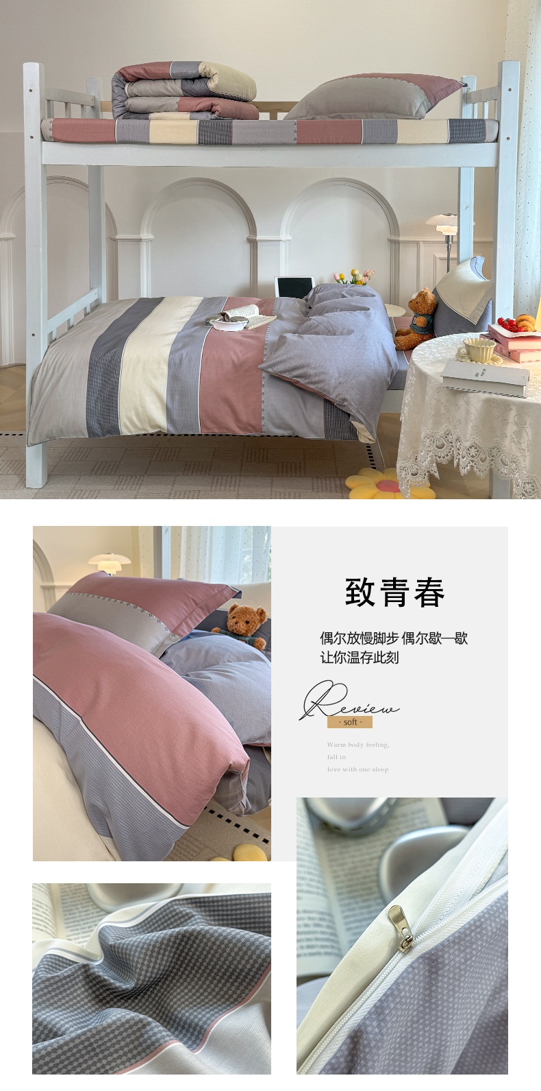 (总)壹贝家纺 2025新款学生季喷气全棉跑量宿舍三件套(提供买家秀)