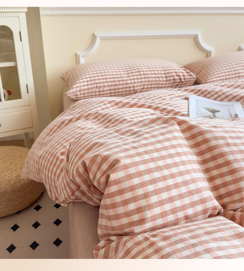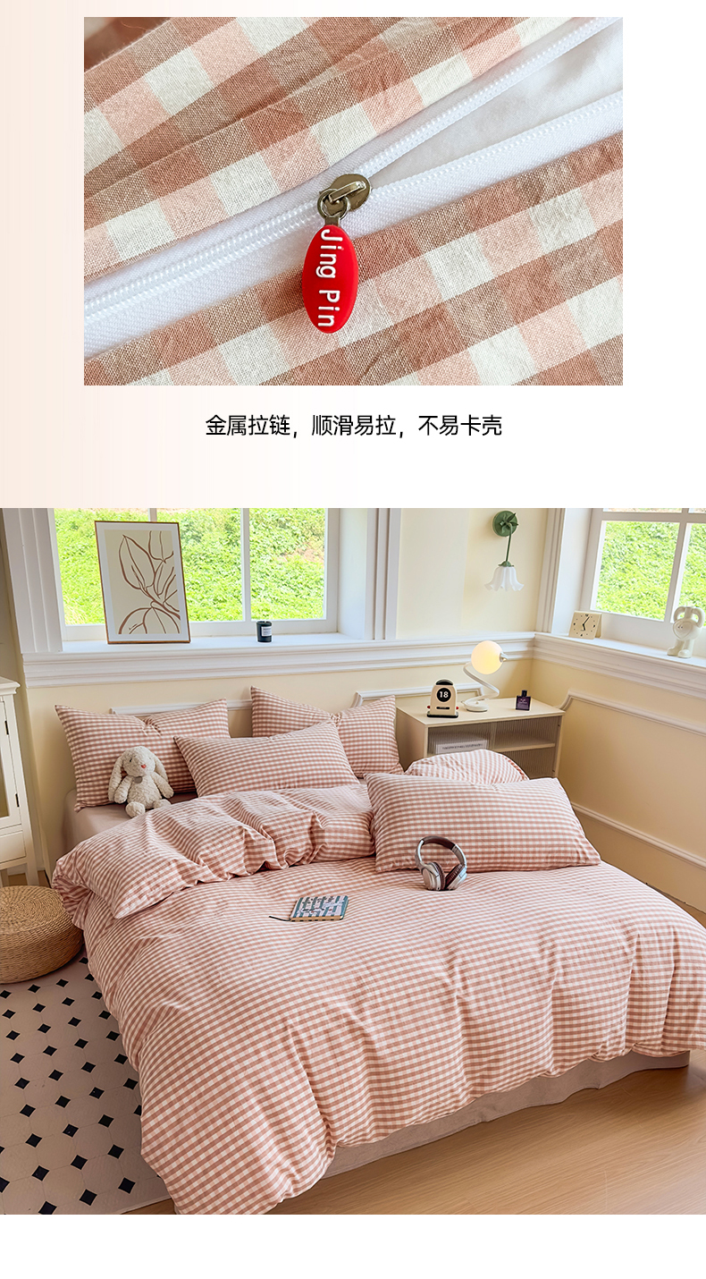 • 91家纺网 家纺一手货源 找家纺 菡宝 【不断货 预留5公分缩水】a类母婴级纯棉被罩全棉色织水洗棉被套单件 支持定制定做尺寸 粉小格