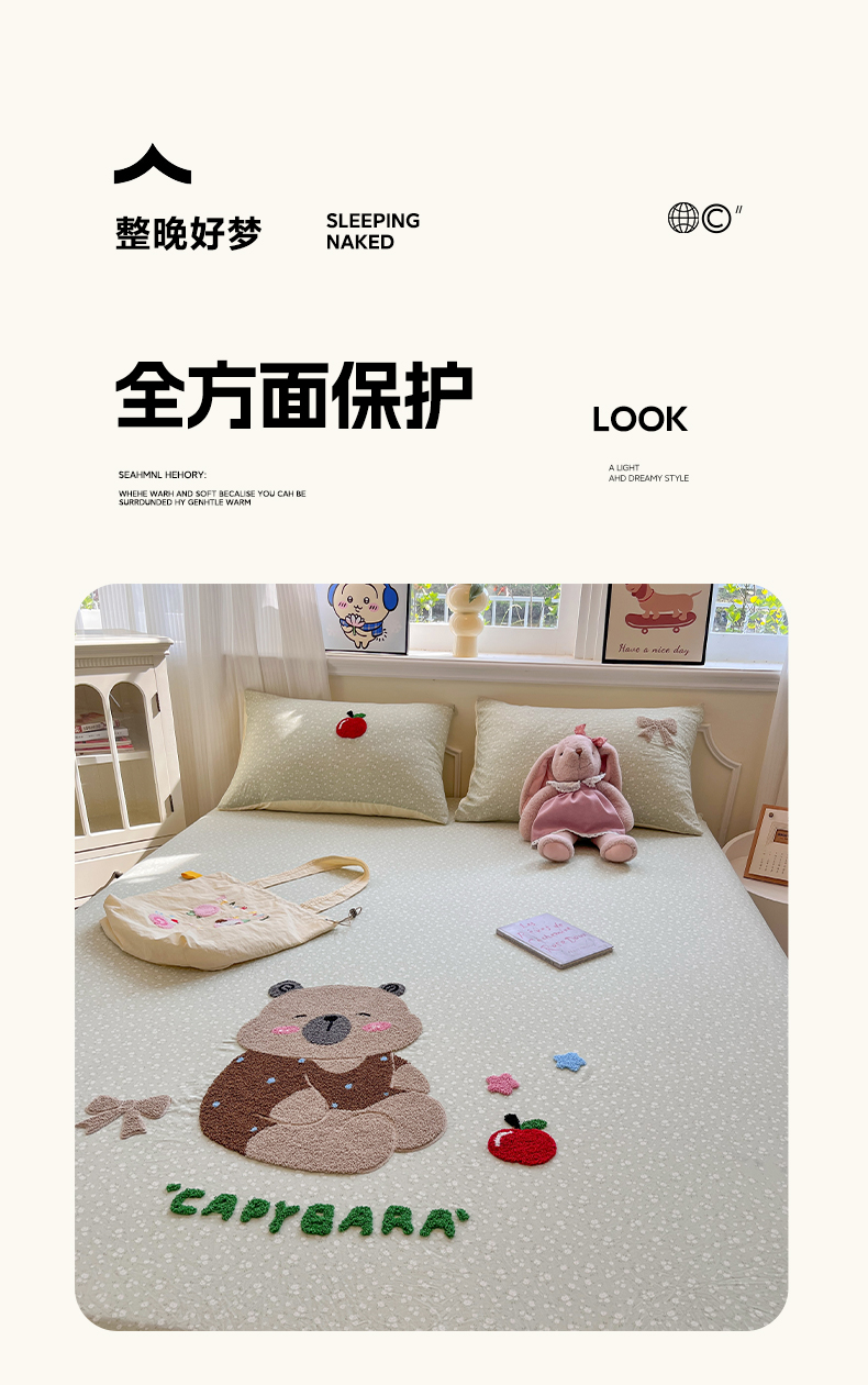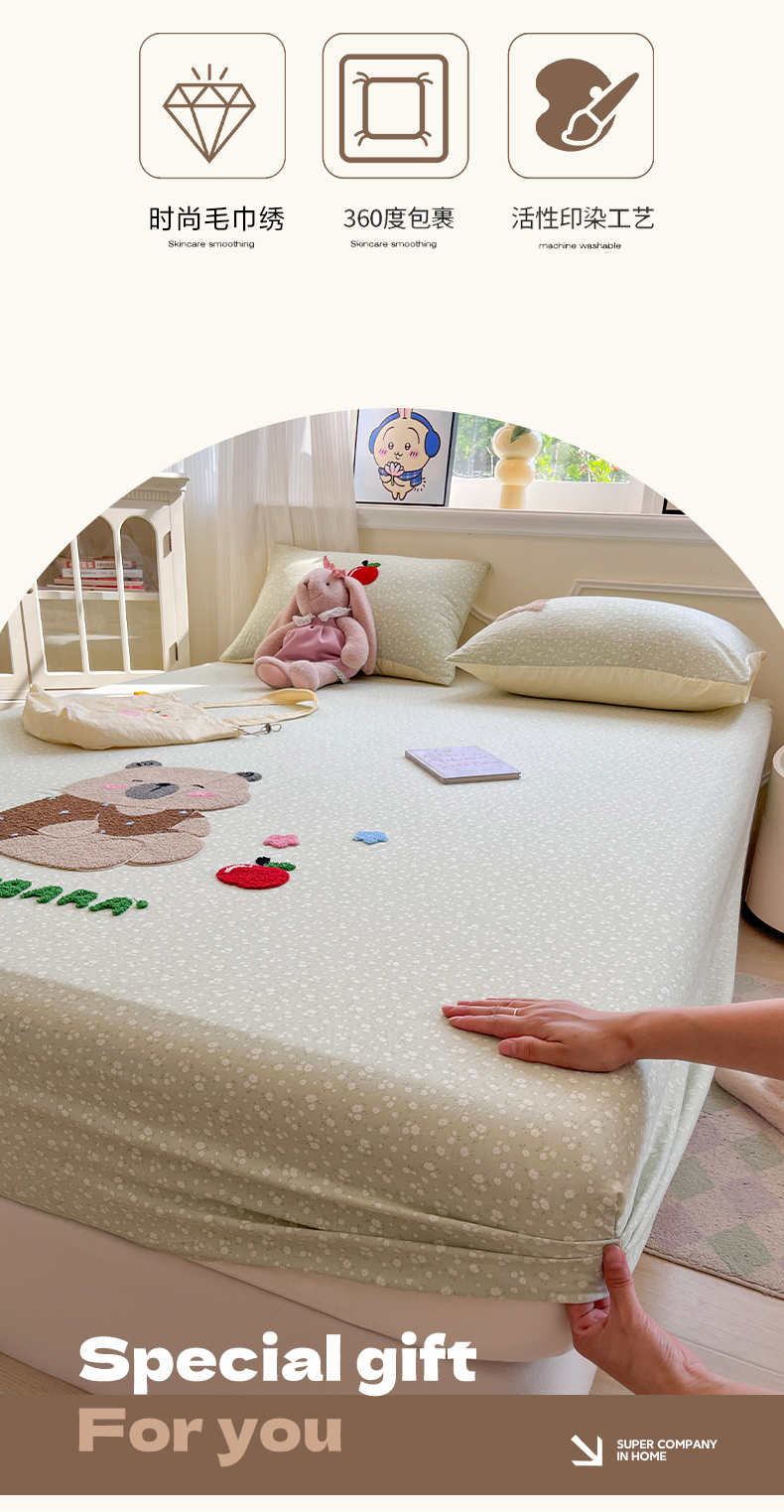 盼季家纺 2025新款水洗棉毛巾绣床笠系列(提供买家秀) 毛巾绣床笠-萌萌狗