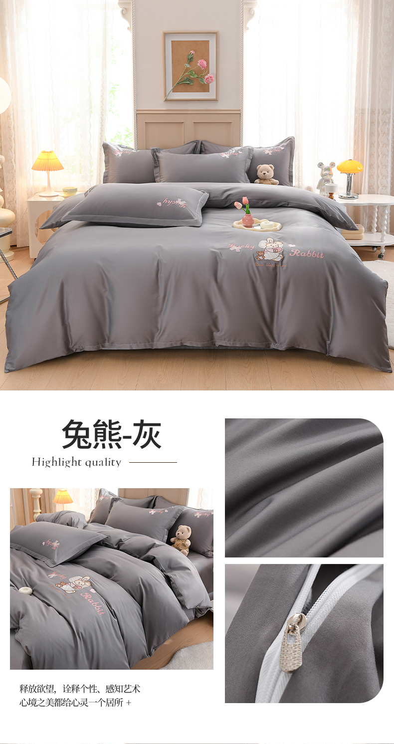 (总)登登家纺 2025新款A类长绒棉刺绣四件套-卡通,兔熊-白青,兔熊-白紫,兔熊-粉,兔熊-粉紫,兔熊-灰,兔熊-蓝,兔熊-青,兔熊-轻白,兔熊-紫