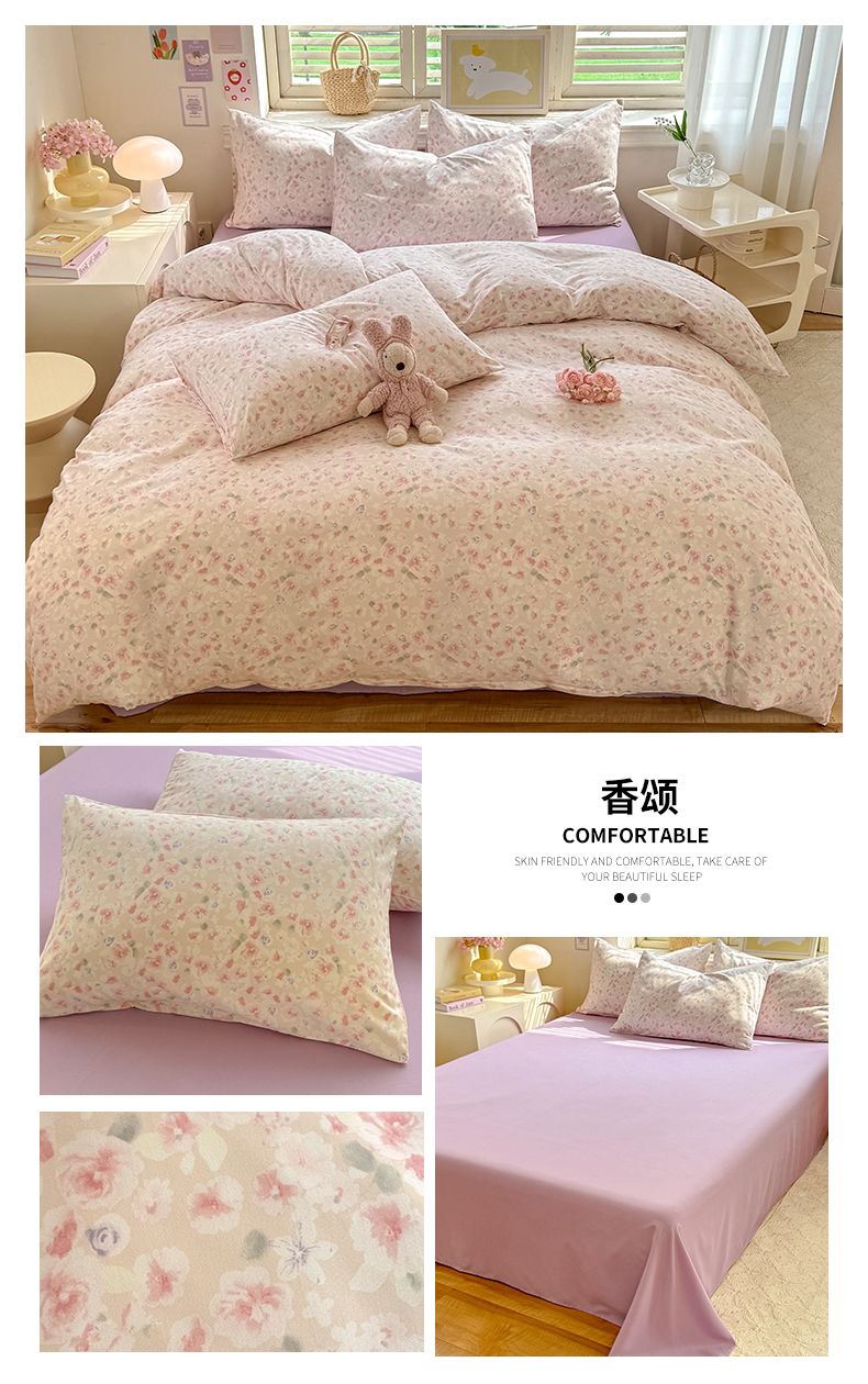 (总)多品家纺 2025新款云感双层纱高克重牛奶绒四件套,甜甜草莓,黛西紫,可爱新新,空谷兰香,蓝大格,猫猫小姐,木兰蝶,七里花香,十里春风,珍妮公主,紫大格