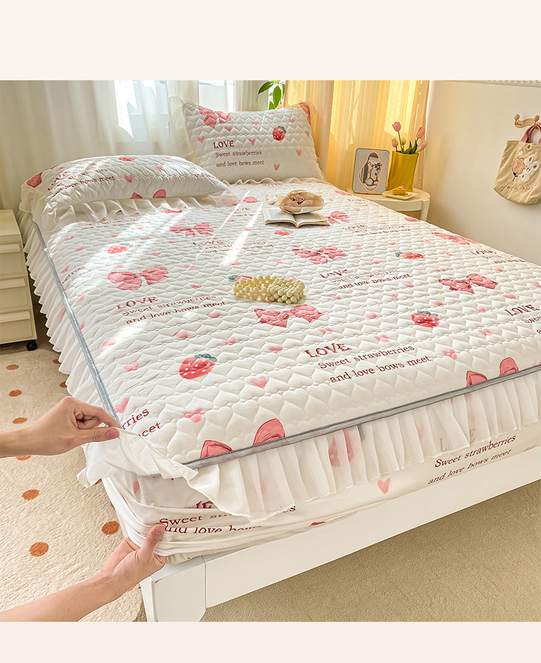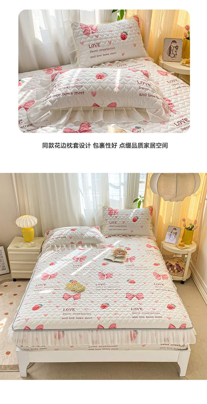 • 91家纺网 家纺一手货源 找家纺 眠势力 2025新款韩版花边夹棉床笠单件公主风四季款床垫保护套床罩 蝴蝶结