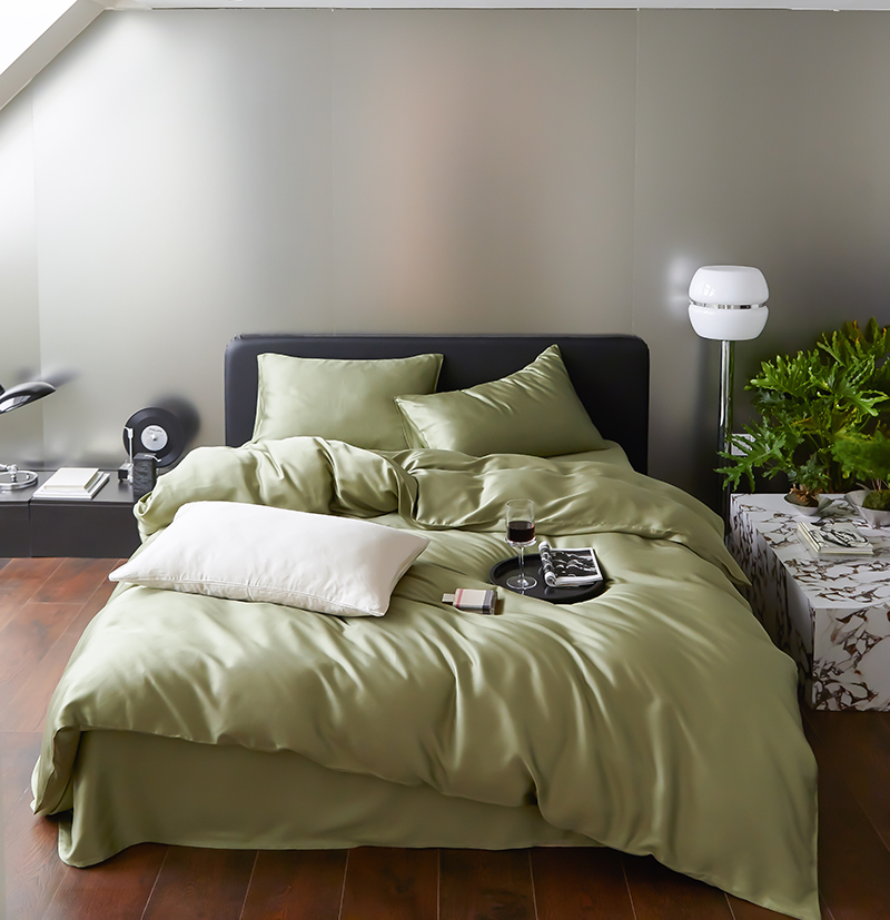 商品名称:威克凯丽 2025新款60支纯色兰精天丝四件套--风格二 天青色-香槟金