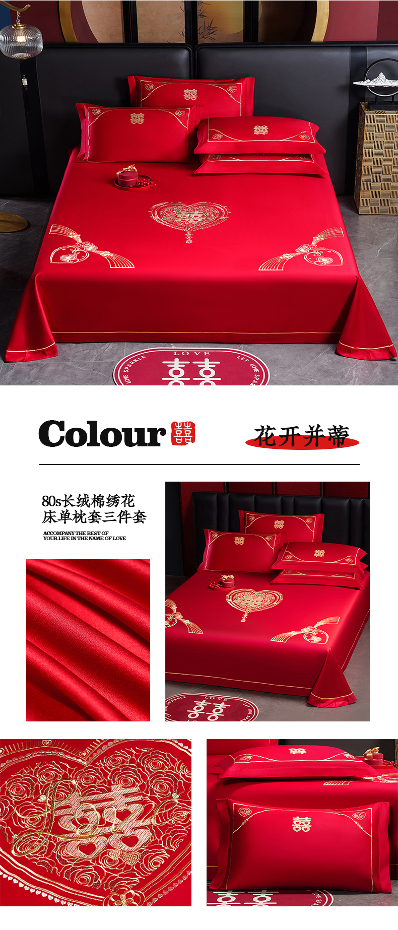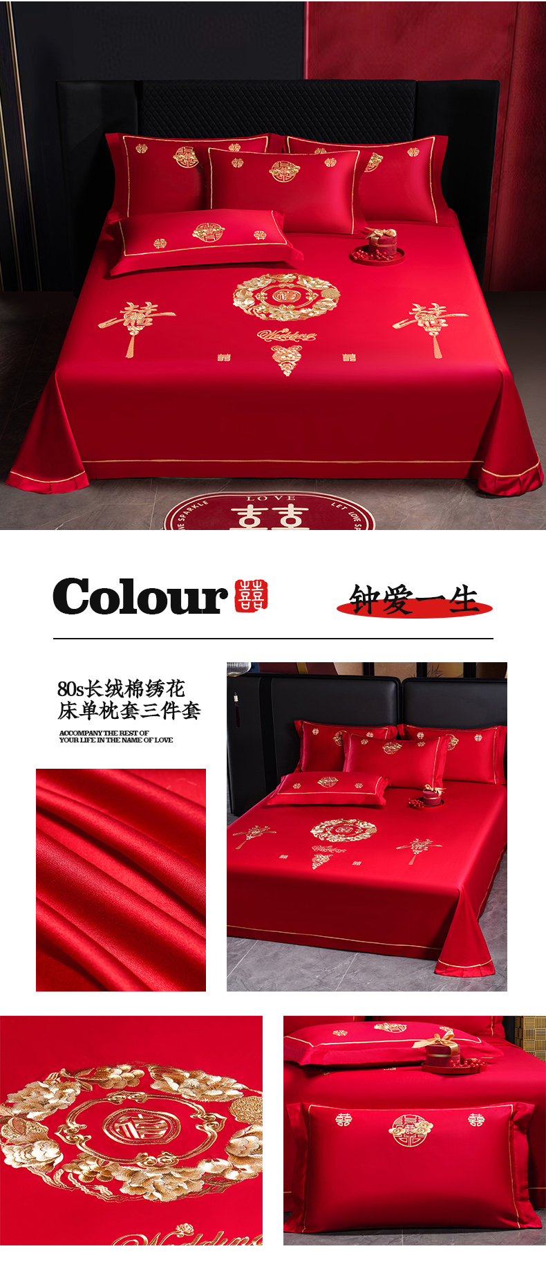 (总)千禧家纺 2024新款双面长绒棉磨毛加厚保暖绣花婚庆套件,大喜大吉,鸿运贺禧,欢乐喜事,欢喜,美满爱情,喜上眉梢,喜约,相伴一生,挚爱