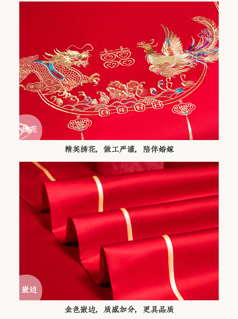 (总)千禧家纺 2025新款长绒棉绣花婚庆三件套,百年好合,花团锦簇,盘龙飞凤,喜结良缘,新婚快乐,游龙戏凤,乘龙配凤,花开并蒂,龙凤合鸣,钟爱一生,钟爱一生 本色,爱情永固,白首之约,欢天喜地,佳偶天成,江山如画,两情相悦,龙飞凤舞,龙跃凤鸣,吾家有喜