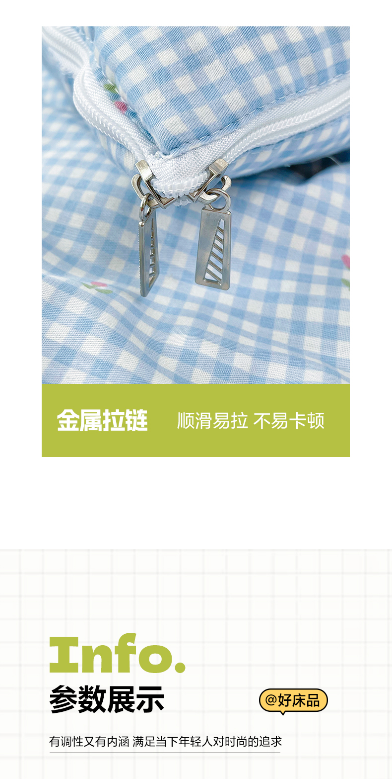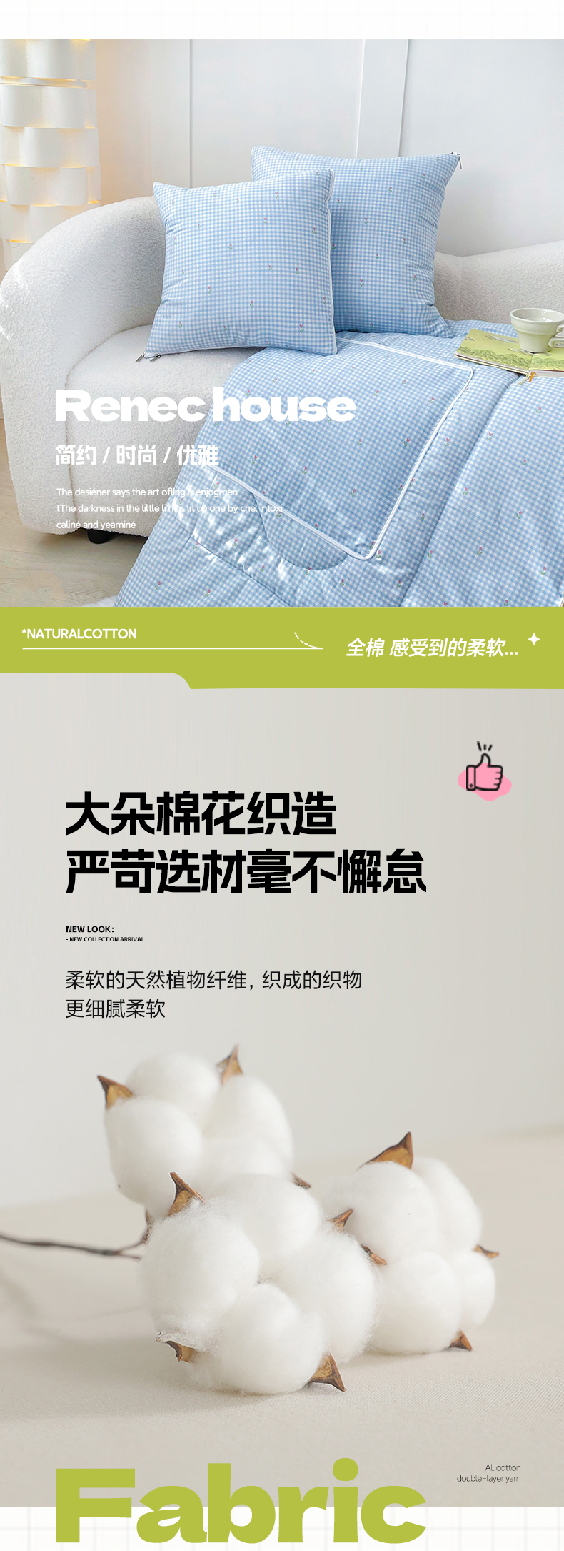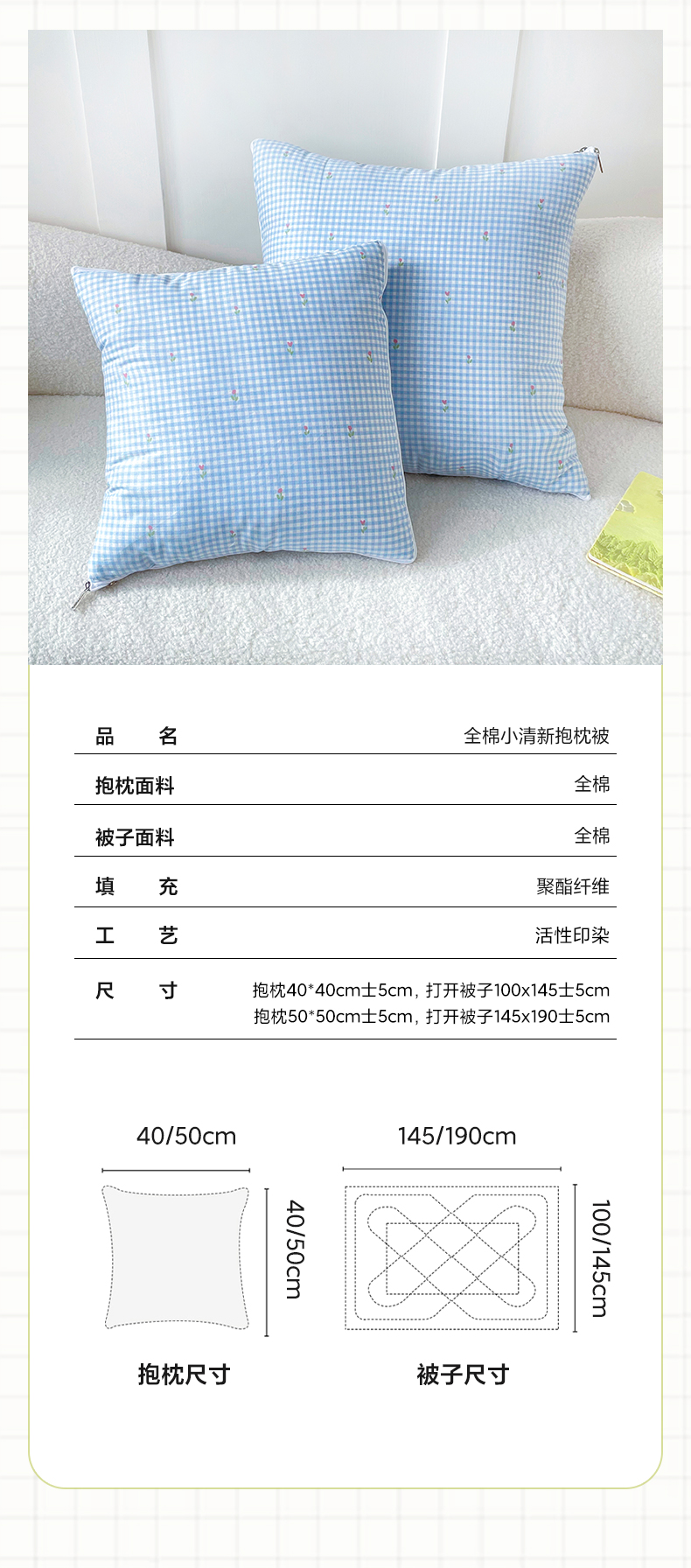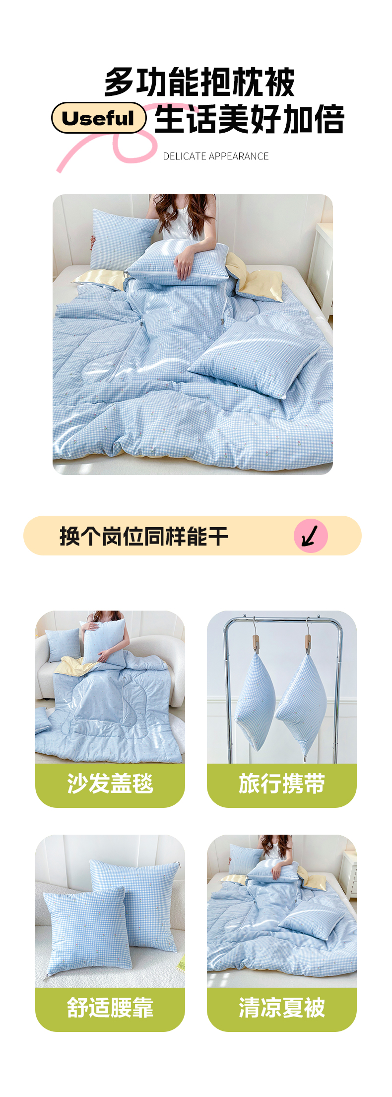 商品名称:番茄+ 2025新款13370全棉印花卡通抱枕被 粉格小花蓝