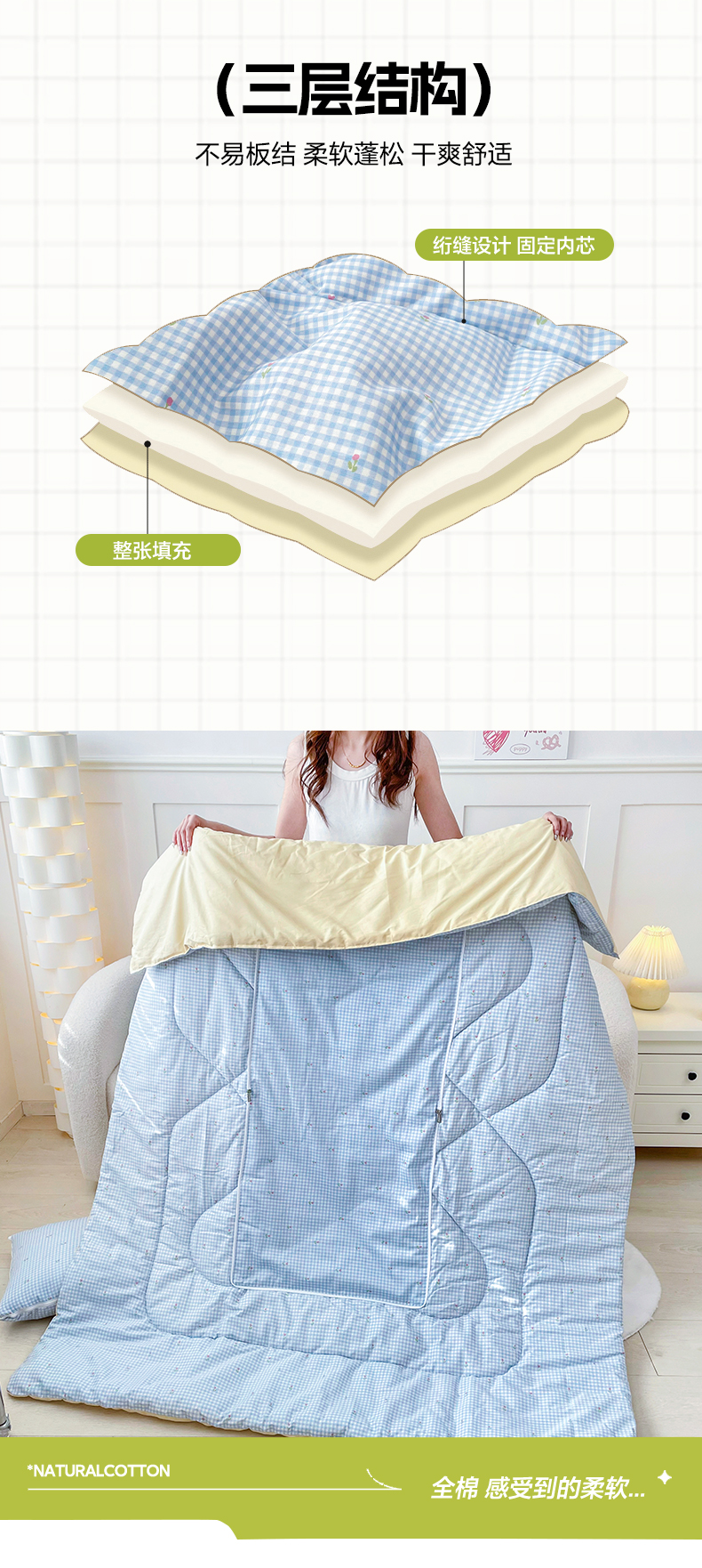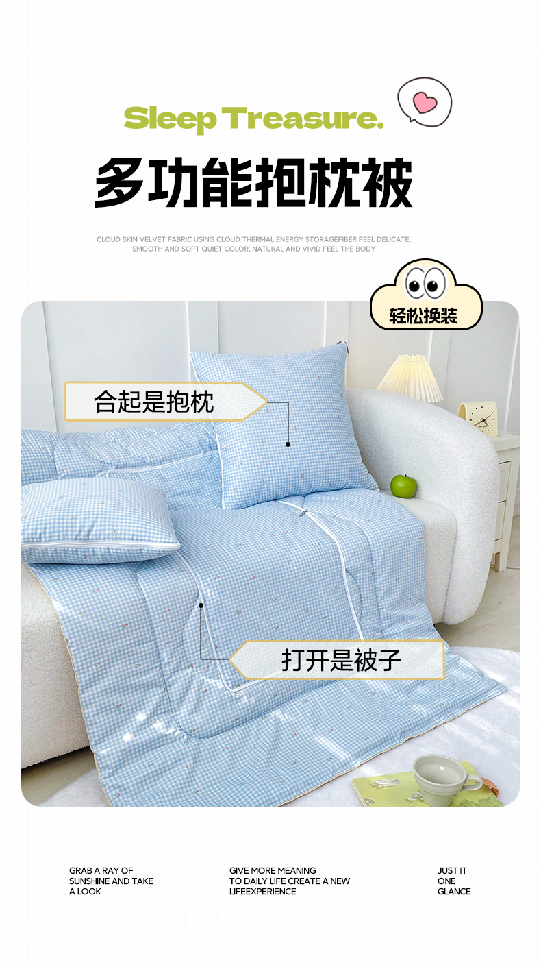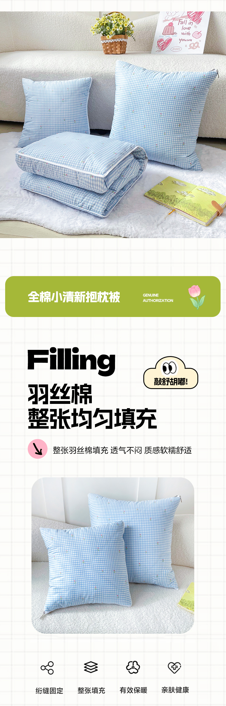 番茄+ 2025新款13370全棉印花卡通抱枕被 粉格小花蓝