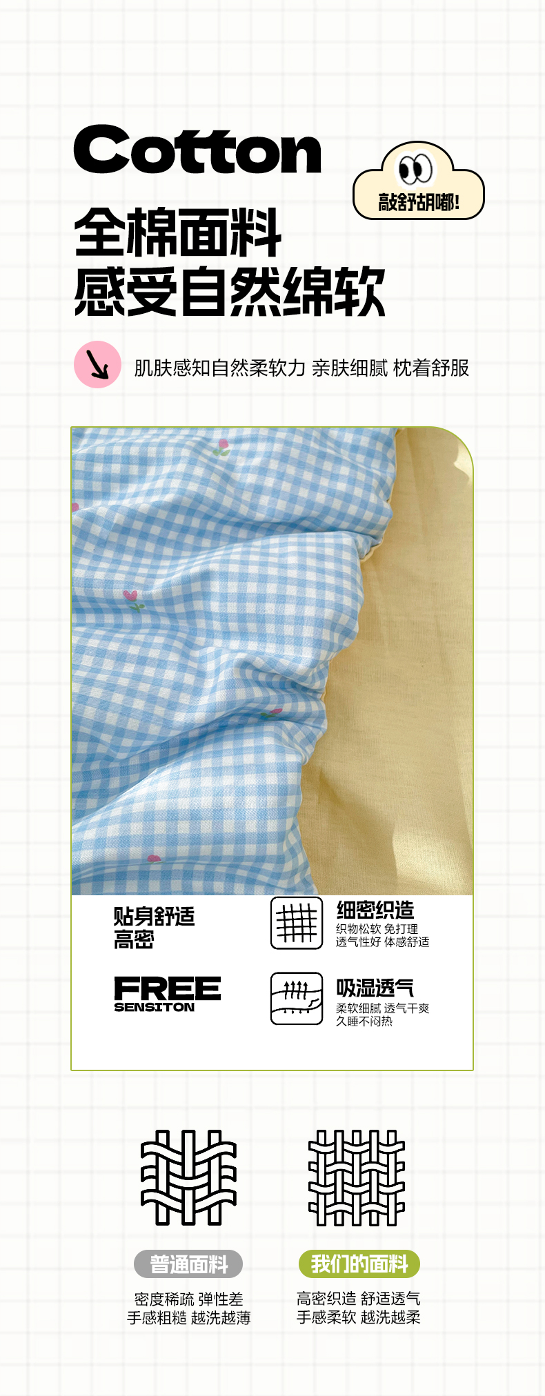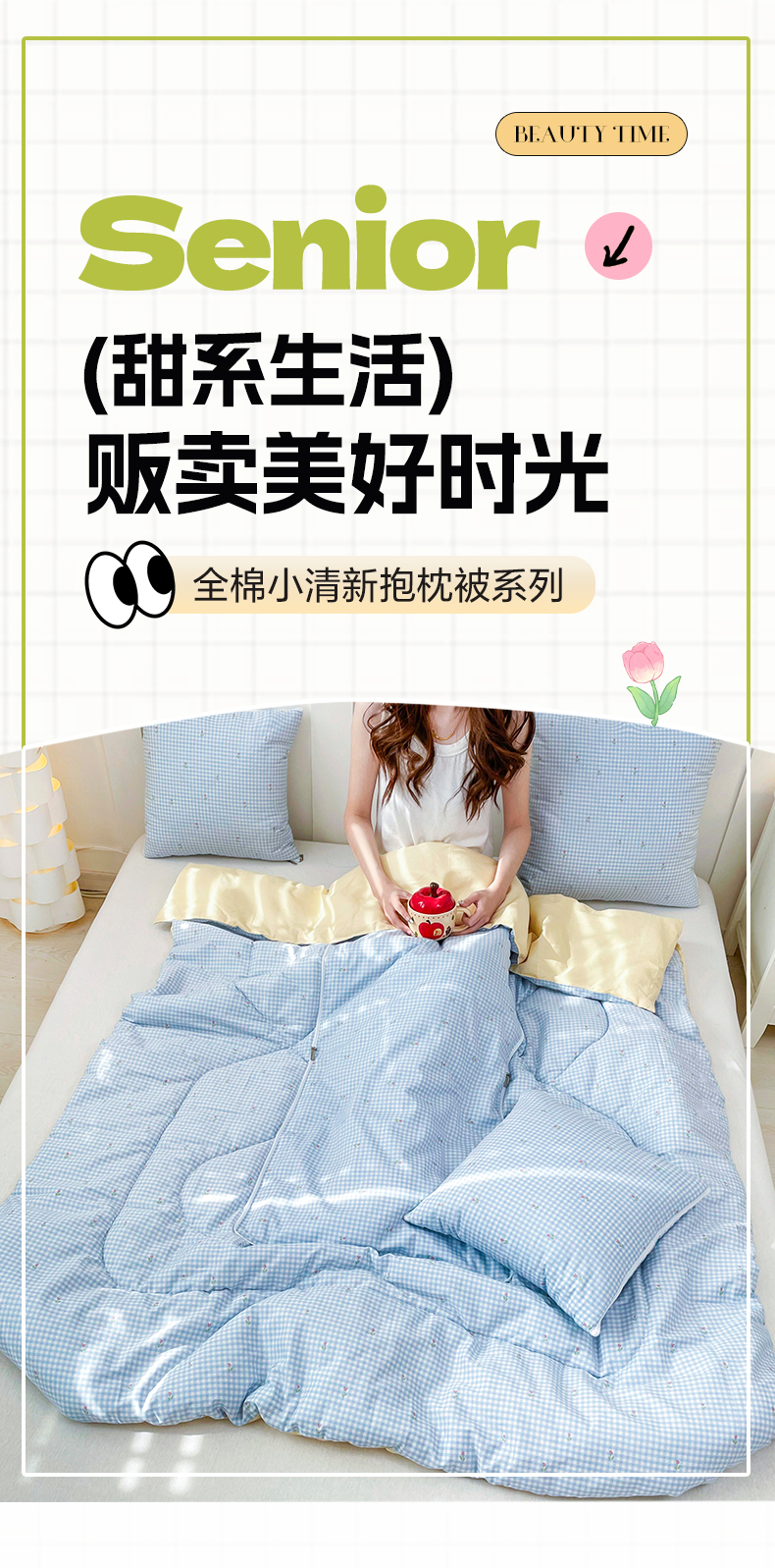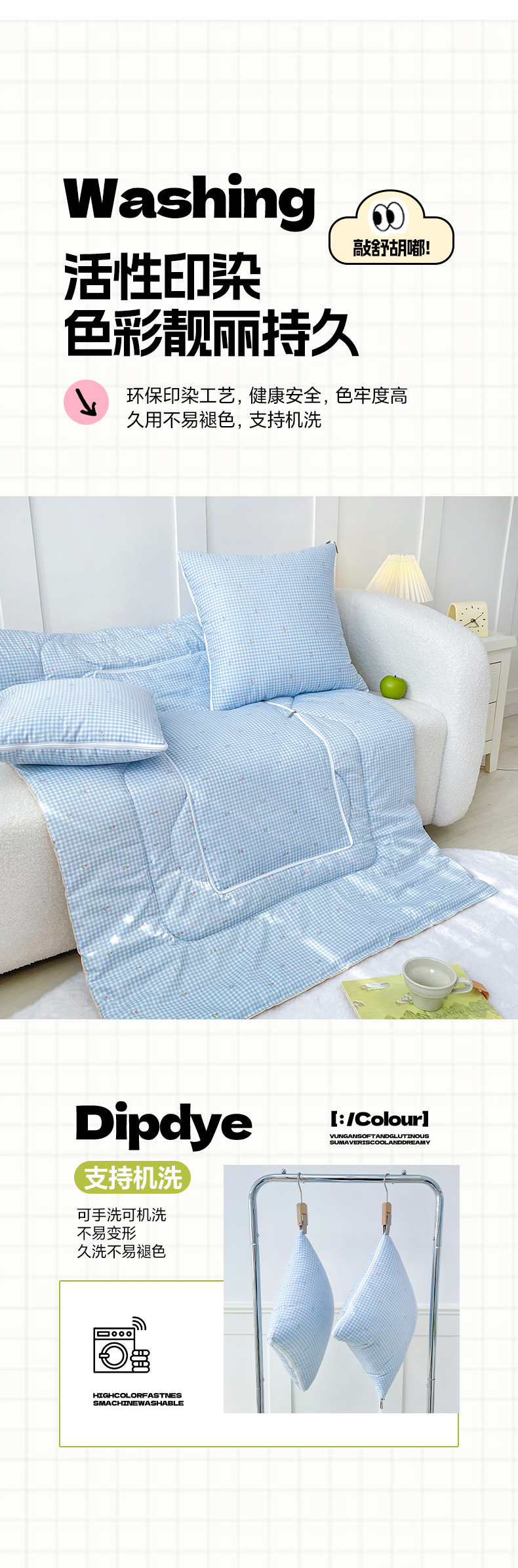 番茄+ 2025新款13370全棉印花卡通抱枕被 粉格小花蓝