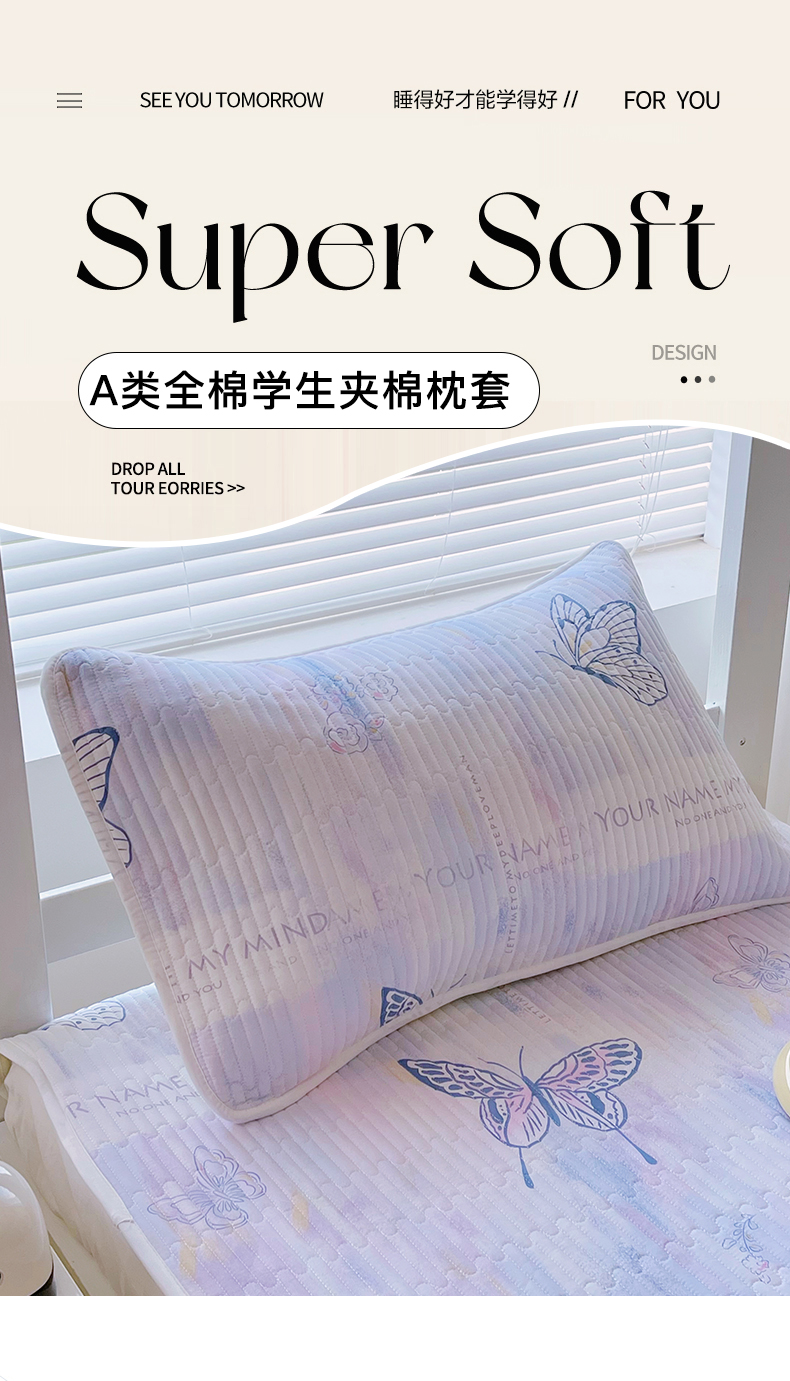 金鑫汇家纺2025新款A类学生宿舍枕套系列单品 梦蝶