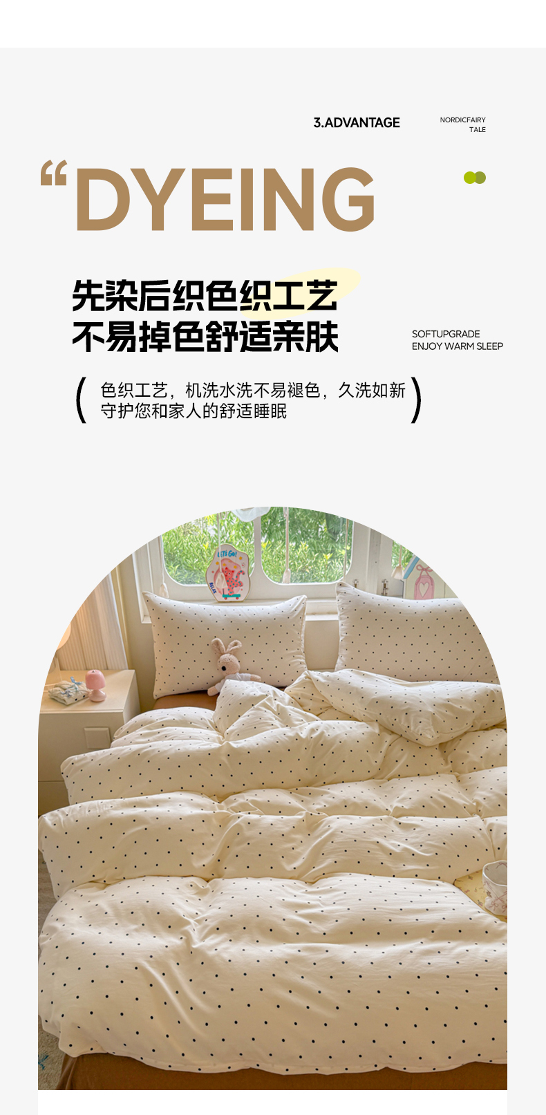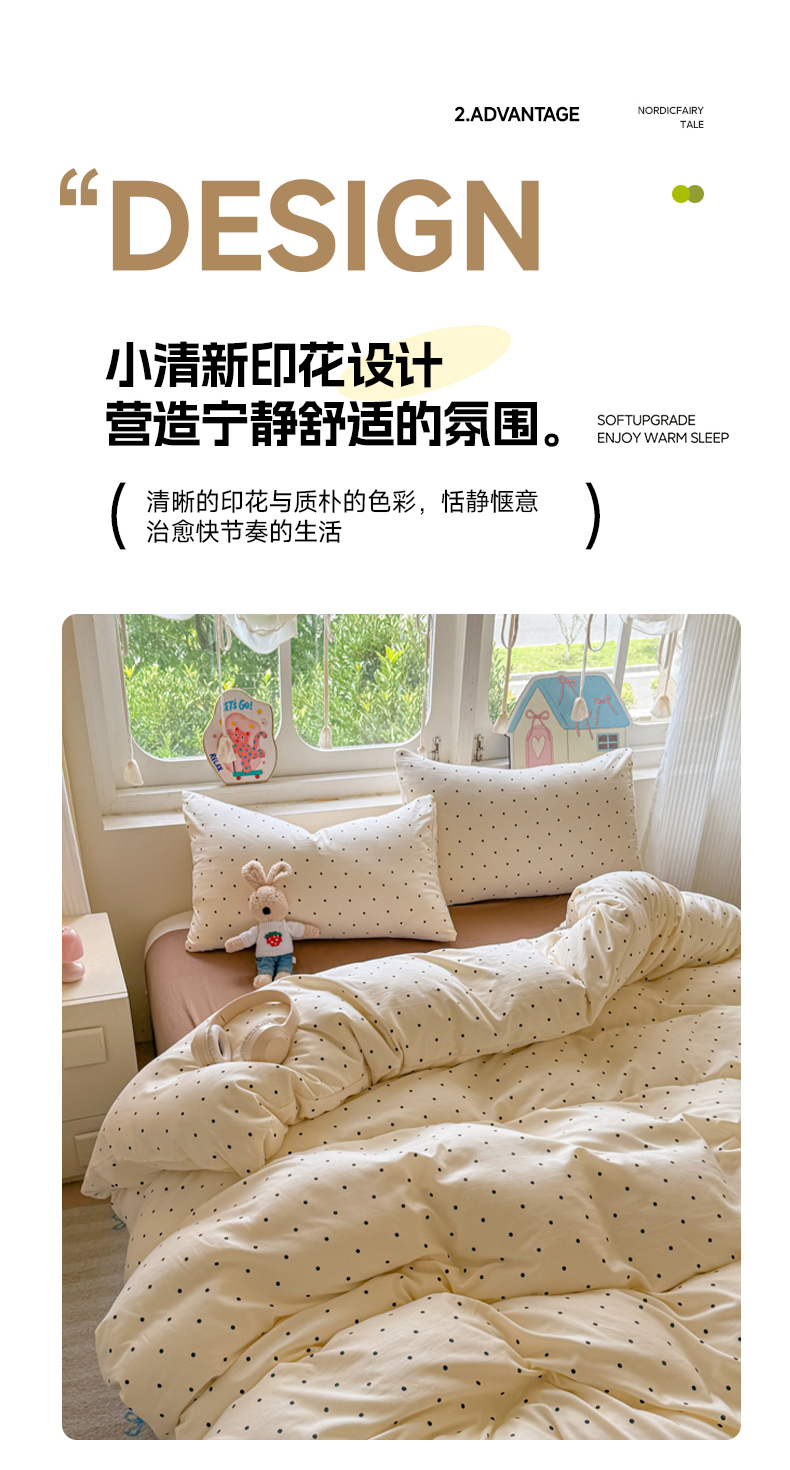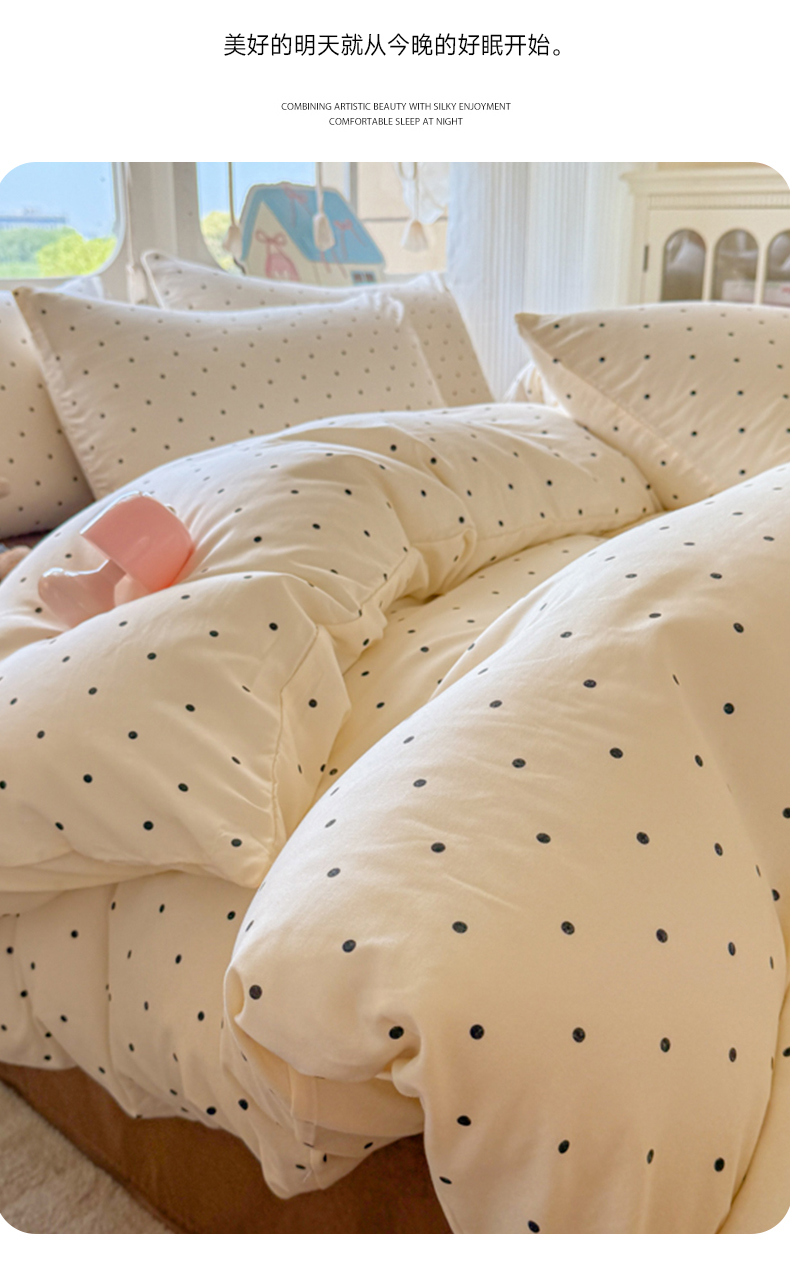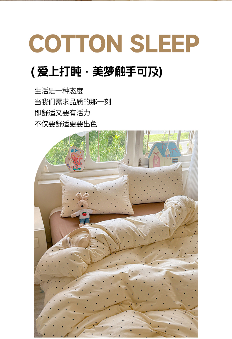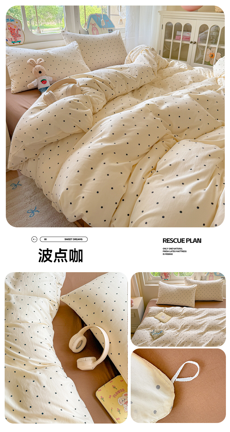 当前位置: 91家纺网 > 商品网购 > 床品套件 > 四件套 > 水洗棉四件套 > 晚爱家纺(原晚安家居) 2025新款超柔水洗棉四件套卡通小清新学生宿舍三件套 波点咖