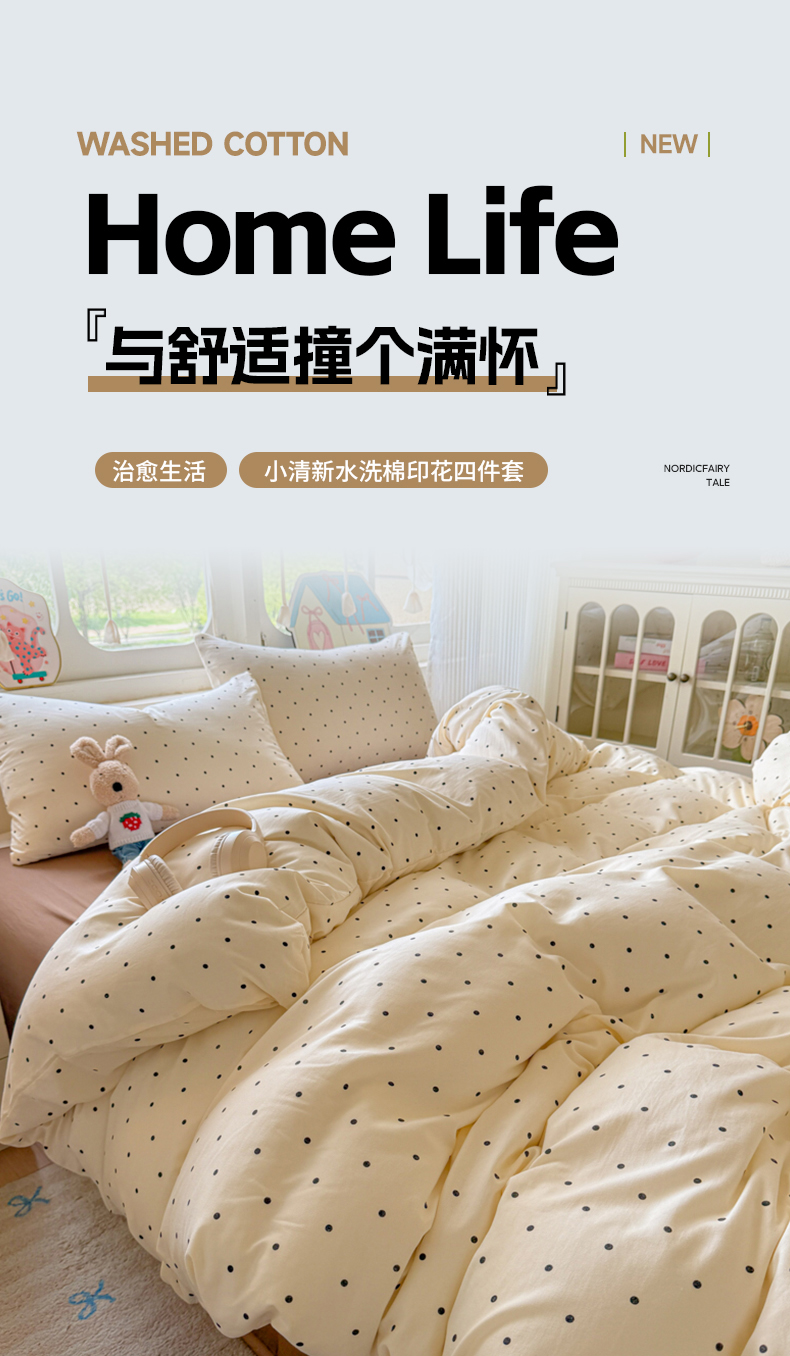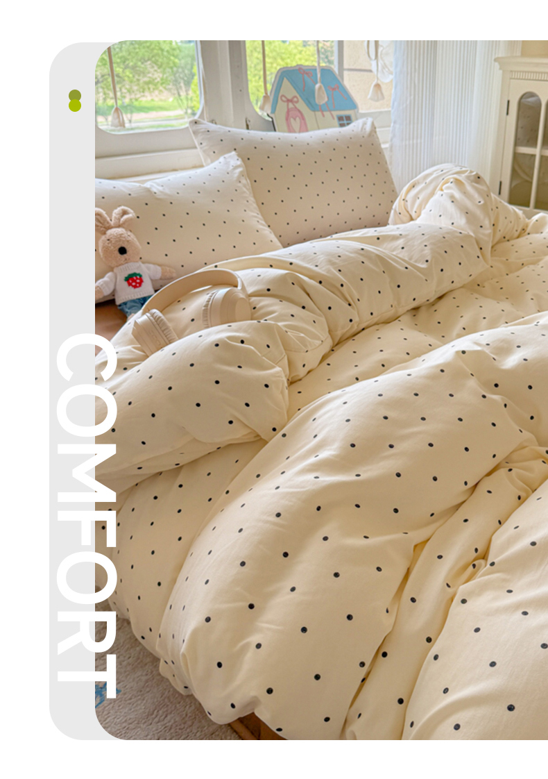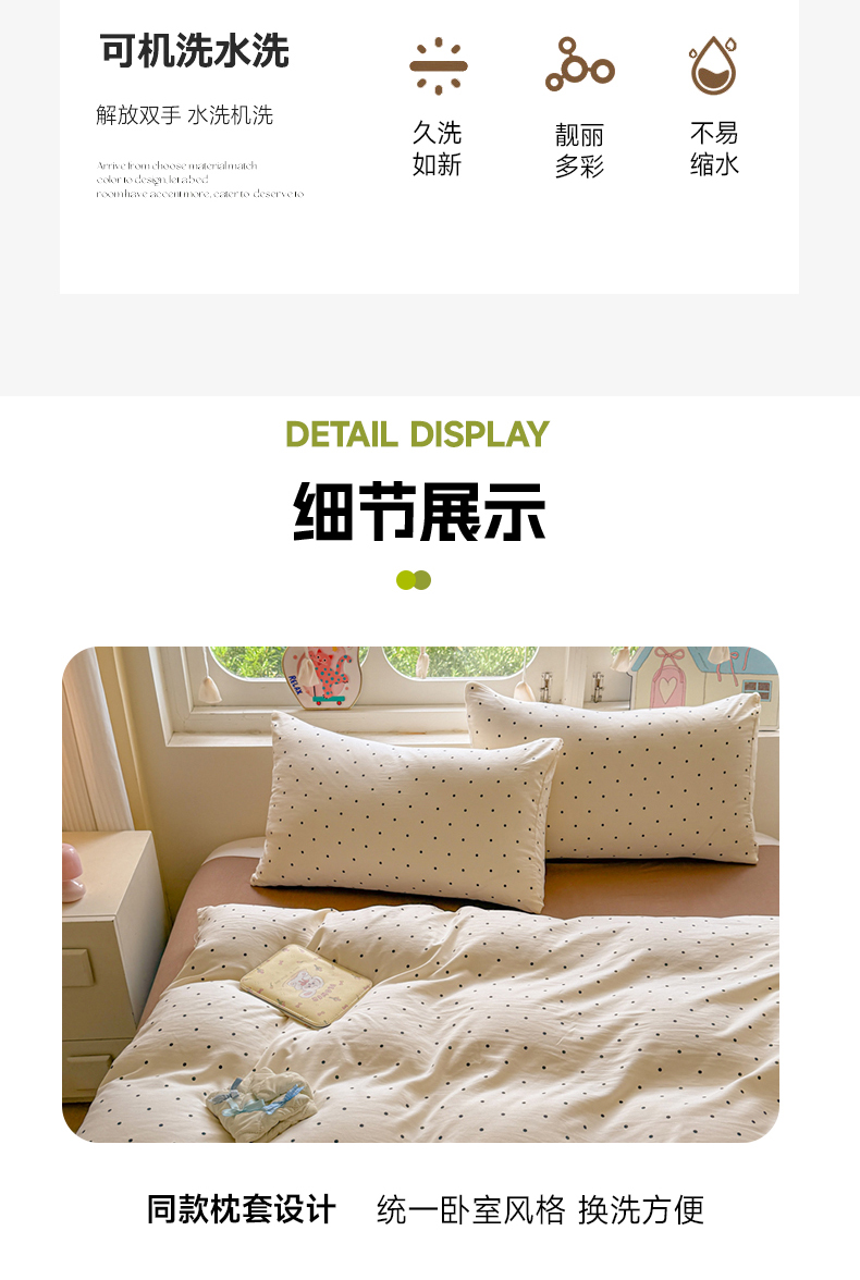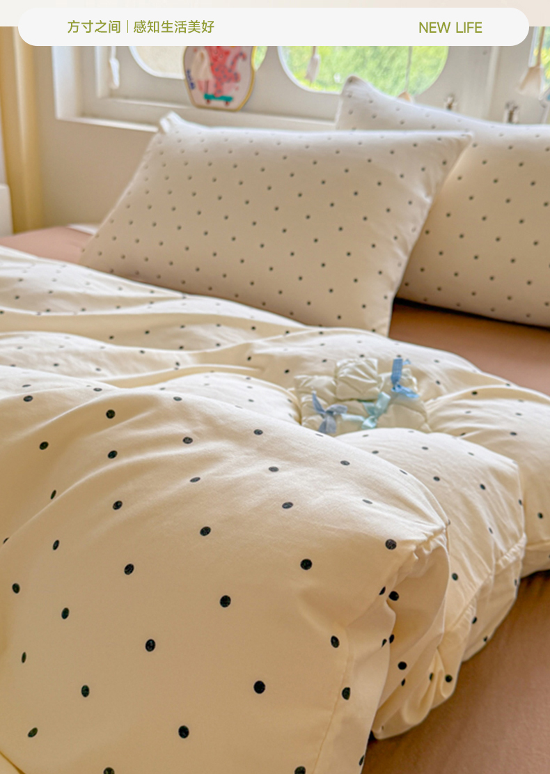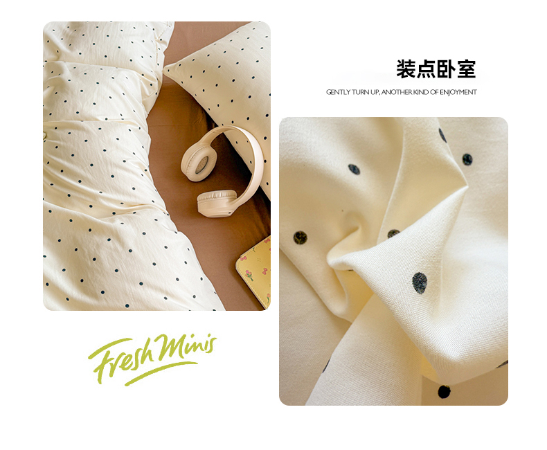 当前位置: 91家纺网 > 商品网购 > 床品套件 > 四件套 > 水洗棉四件套 > 晚爱家纺(原晚安家居) 2025新款超柔水洗棉四件套卡通小清新学生宿舍三件套 波点咖