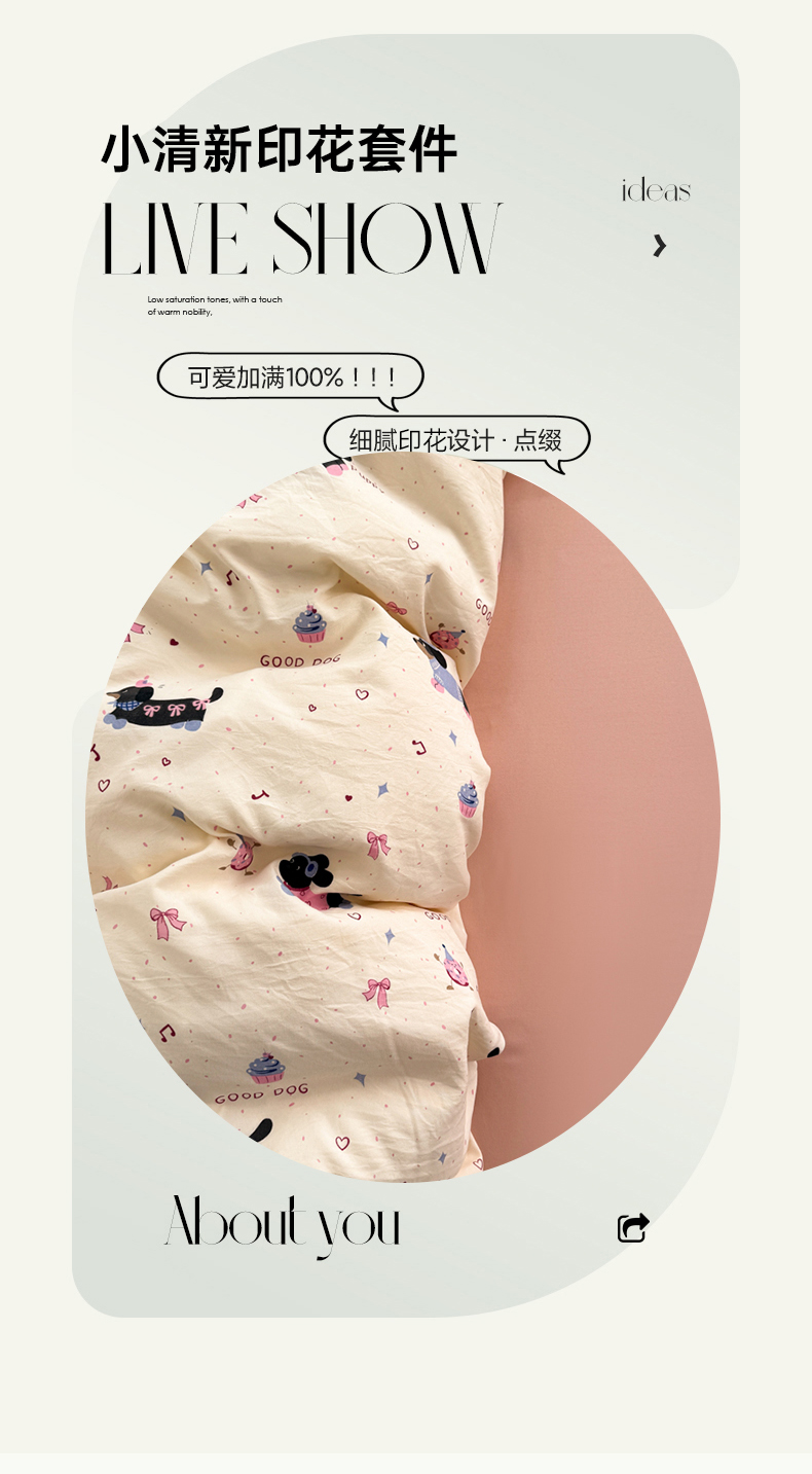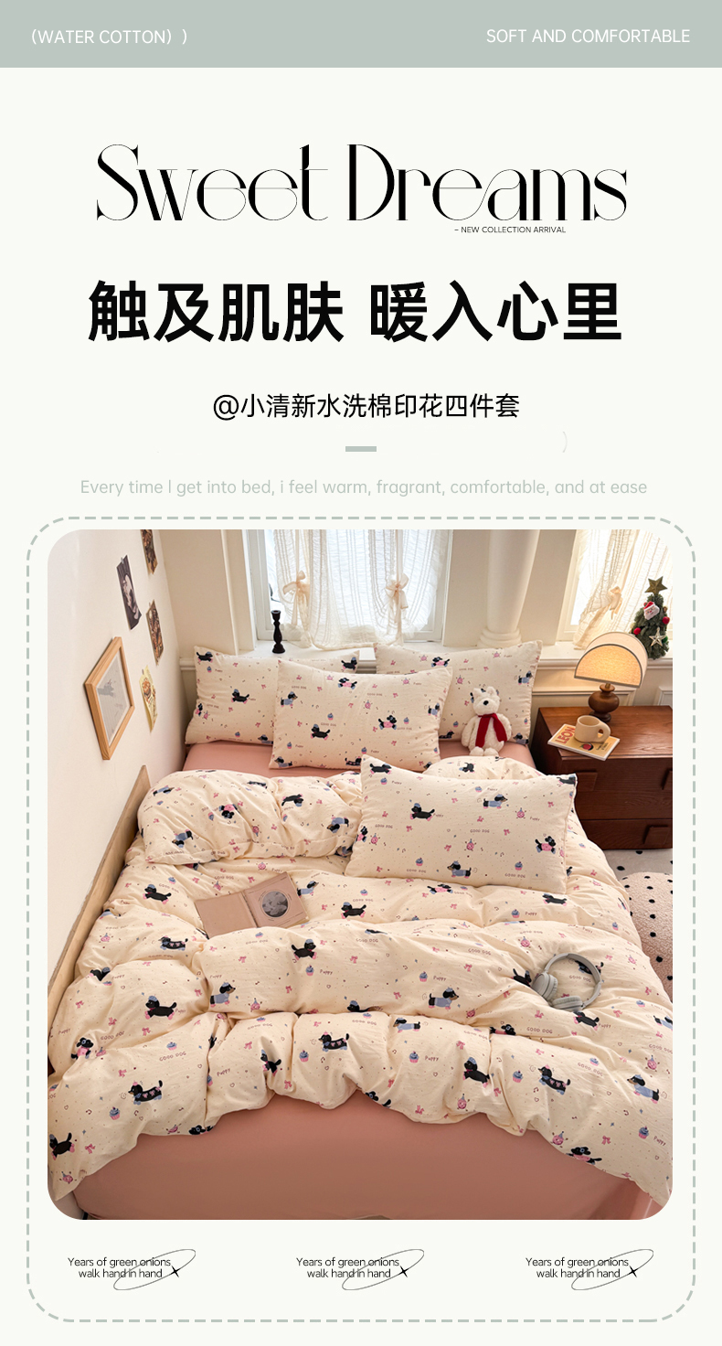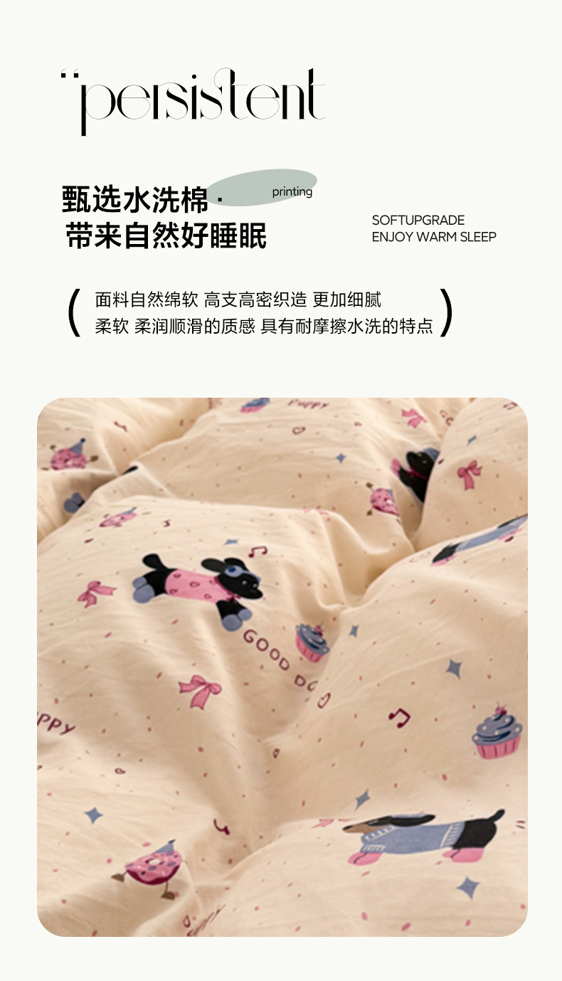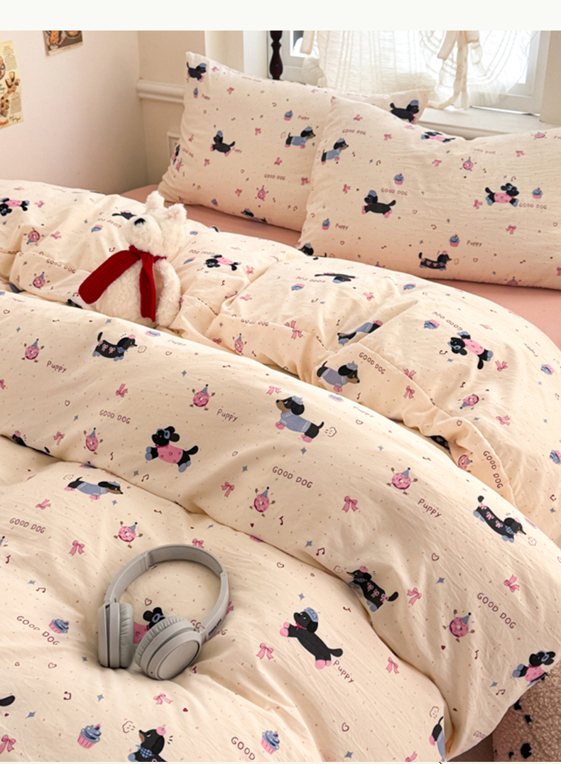 当前位置: 91家纺网 > 商品网购 > 床品套件 > 四件套 > 水洗棉四件套 > 晚爱家纺(原晚安家居) 2025新款超柔水洗棉四件套卡通小清新学生宿舍三件套 幸福狗狗