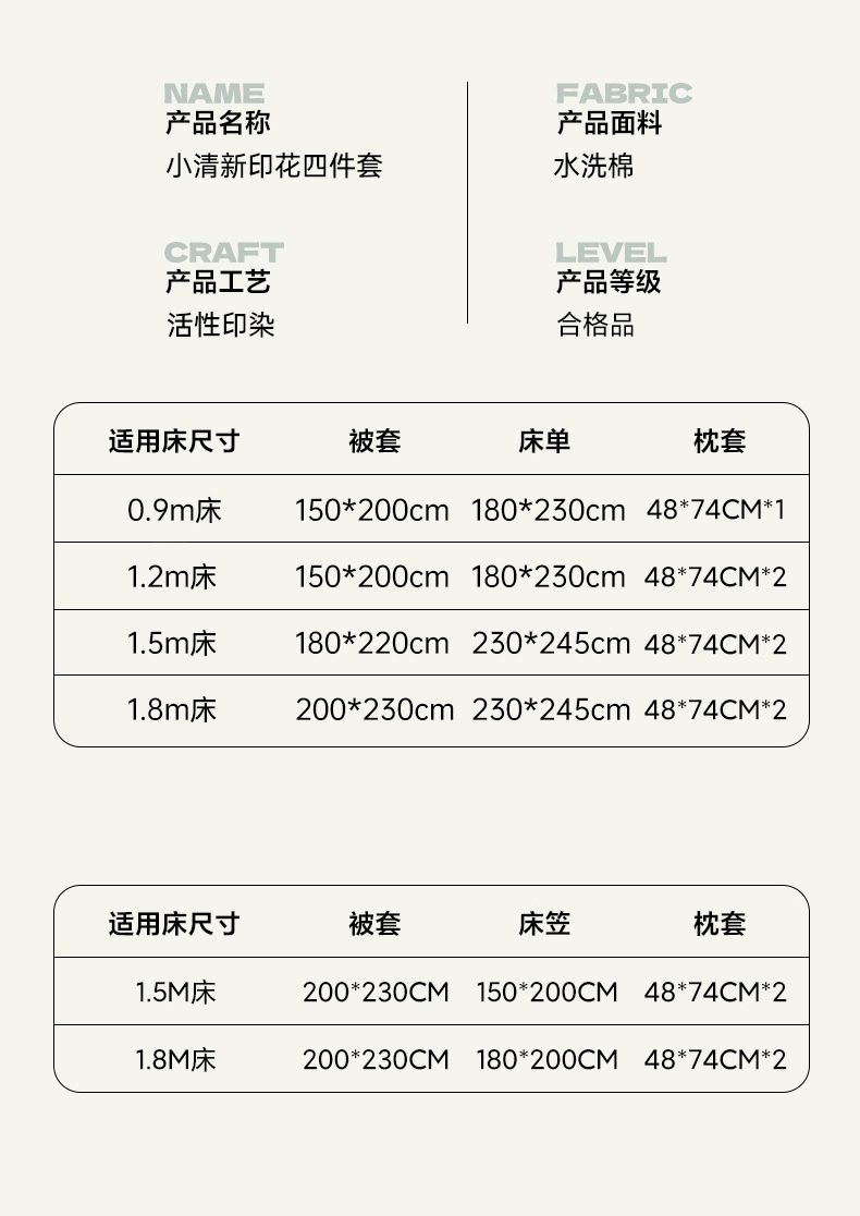 1.5m-1.8m床标准号(被套200x230cm) | ¥44.00 |