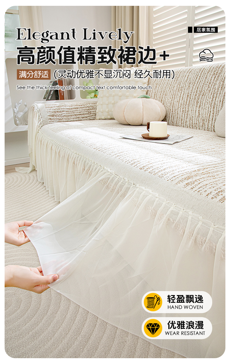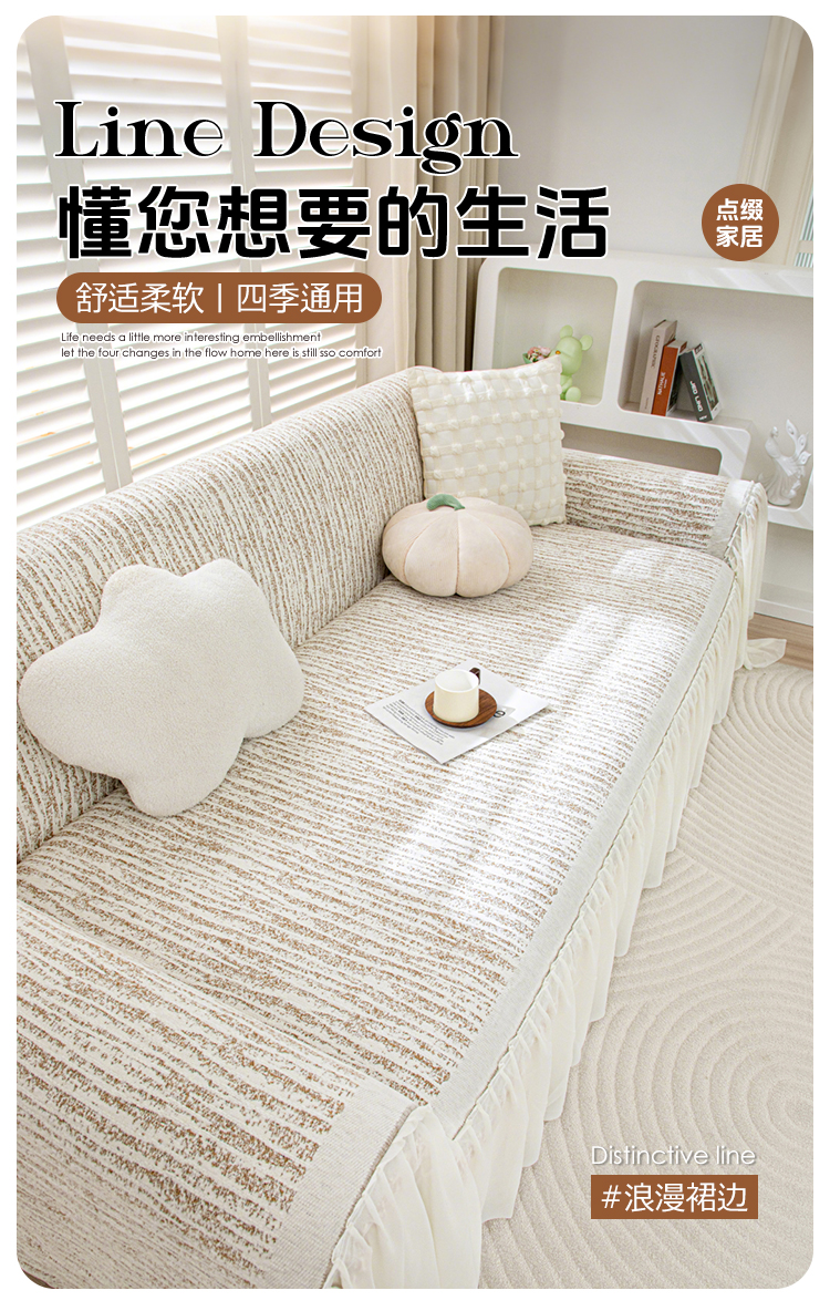 当前位置: 91家纺网 > 商品网购 > 居家布艺 > 坐垫/椅垫/沙发垫 > 沙发 > 沐沐家纺 2026春夏新款宛柔裙边沙发巾 宛柔裙边-驼色