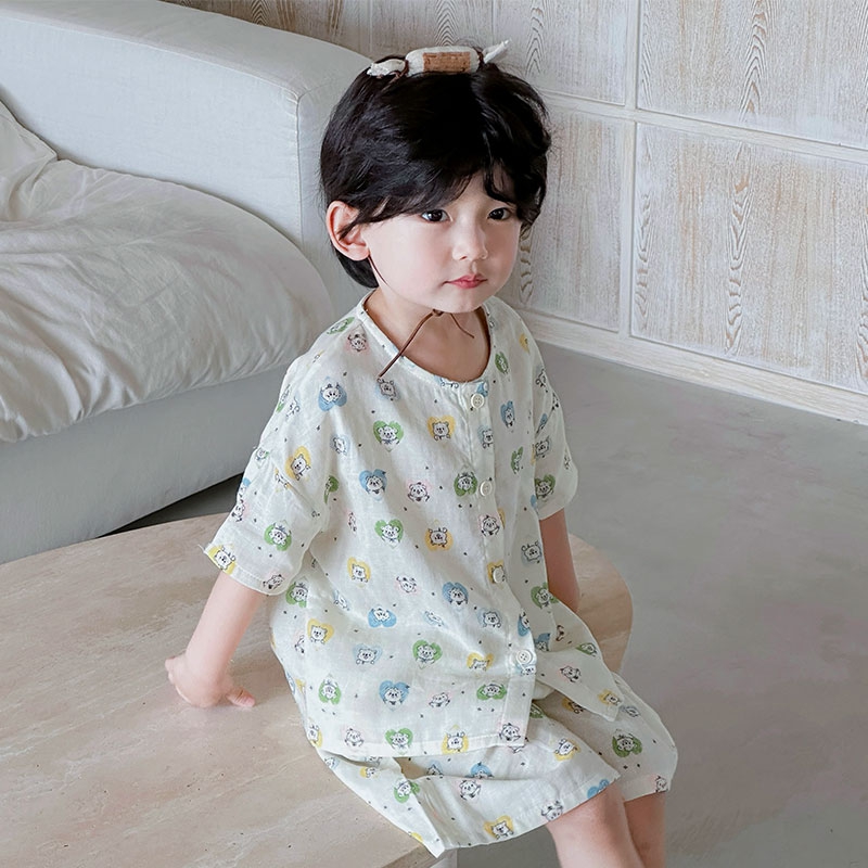 妍景家居生活馆 2025新款儿童纱布圆领开衫款 樱桃小狗