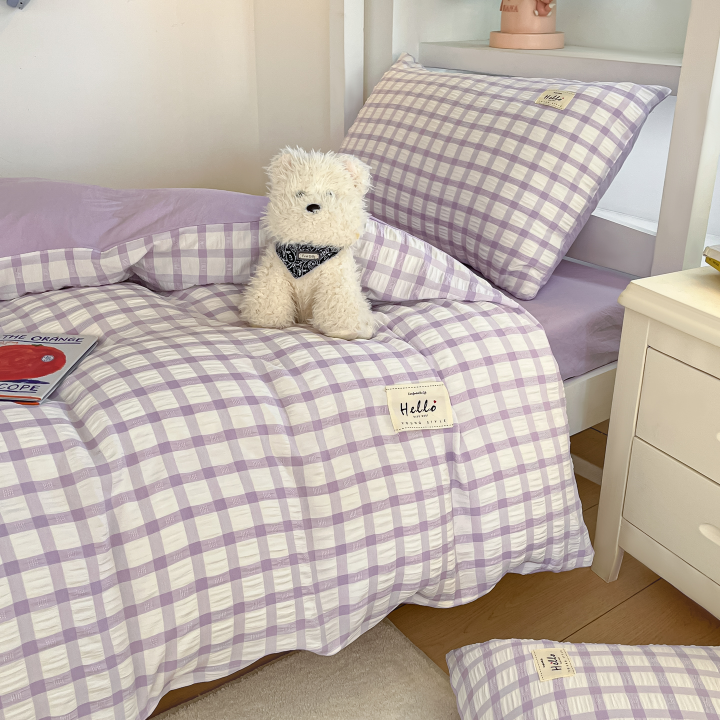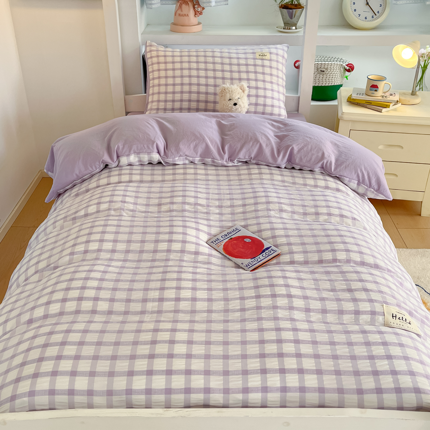 当前位置: 91家纺网 > 商品网购 > 床品套件 > 四件套 > 双层纱四件套 > 顾里2025新款韩系格子阳离子泡泡纱学生宿舍上下铺三件套 香薰紫格
