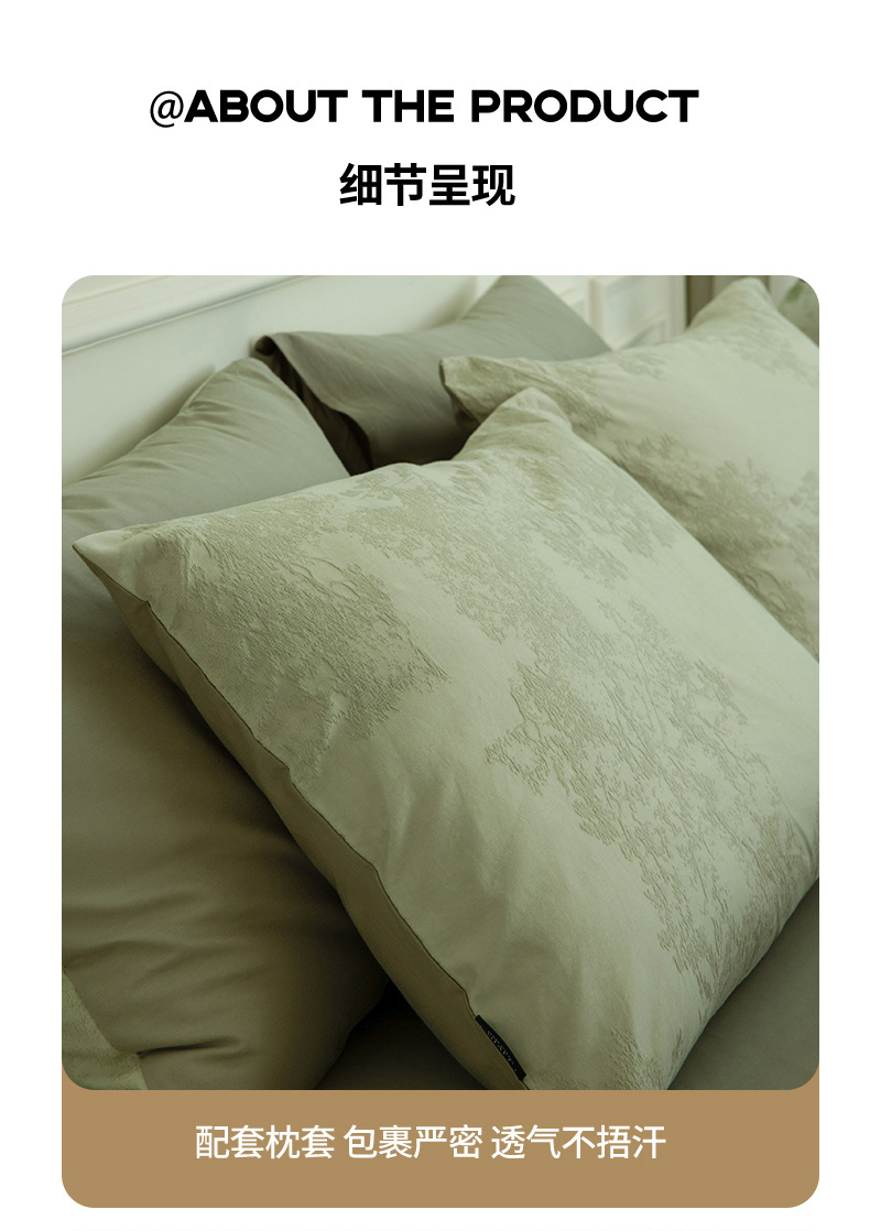 商品名称:宜代光年 2025新款厚织全棉大提花极有家系列四件套 小郁葱-浅绿