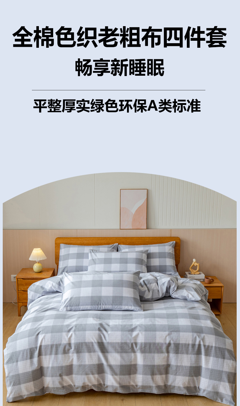 当前位置: 91家纺网 > 商品网购 > 床品套件 > 四件套 > 全棉普通四件套 > 居美良品 2025新款100%全棉色织老粗布四件套 素雅-灰格