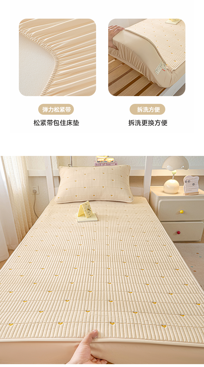 • 91家纺网 家纺一手货源 找家纺 芬晴家纺 2025春夏新款A类大豆夹棉学生床笠单床笠床笠单件-繁星-爱心系列 爱心-卡其