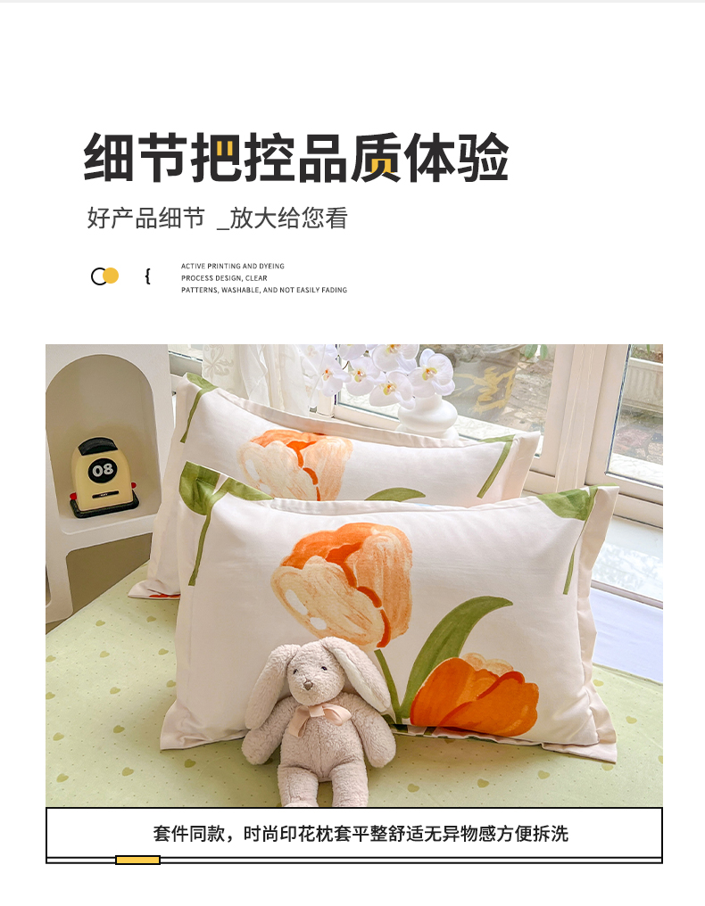 商品名称:文黛家居 2025新款植物羊绒亲肤小版花单被套 郁金香-绿
