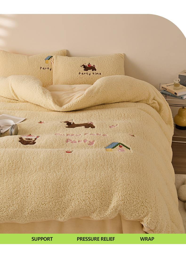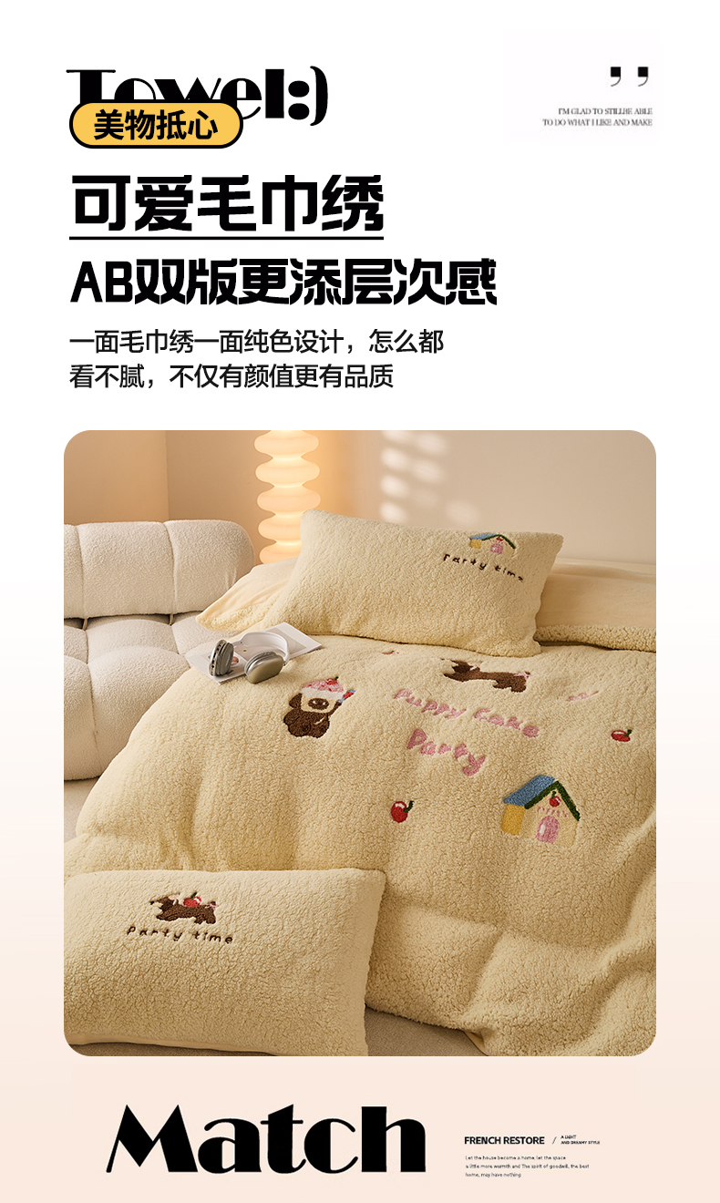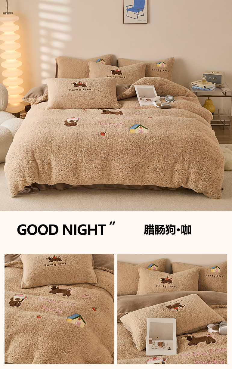 当前位置: 91家纺网 > 商品网购 > 床品套件 > 四件套 > 牛奶绒四件套 > 曼町家居 2025新款羊羔绒牛奶绒毛巾绣四件套 腊肠狗·芝士黄