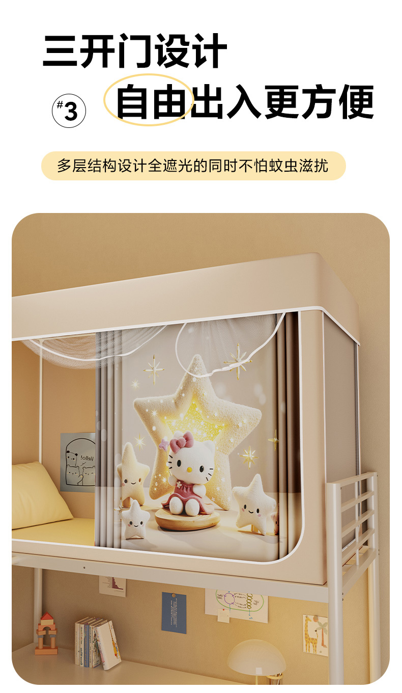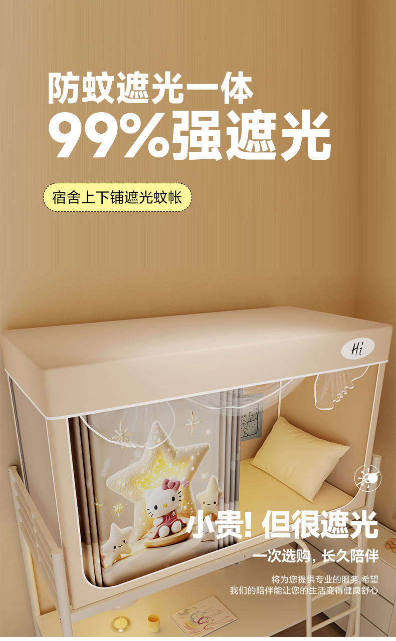 当前位置: 91家纺网 > 商品网购 > 床上用品 > 蚊帐 > 学生蚊帐 > 安金蚊帐2025新款防蚊遮光一体99%强遮光学生宿舍上下铺遮光学生蚊帐-卡其系列 许愿猫
