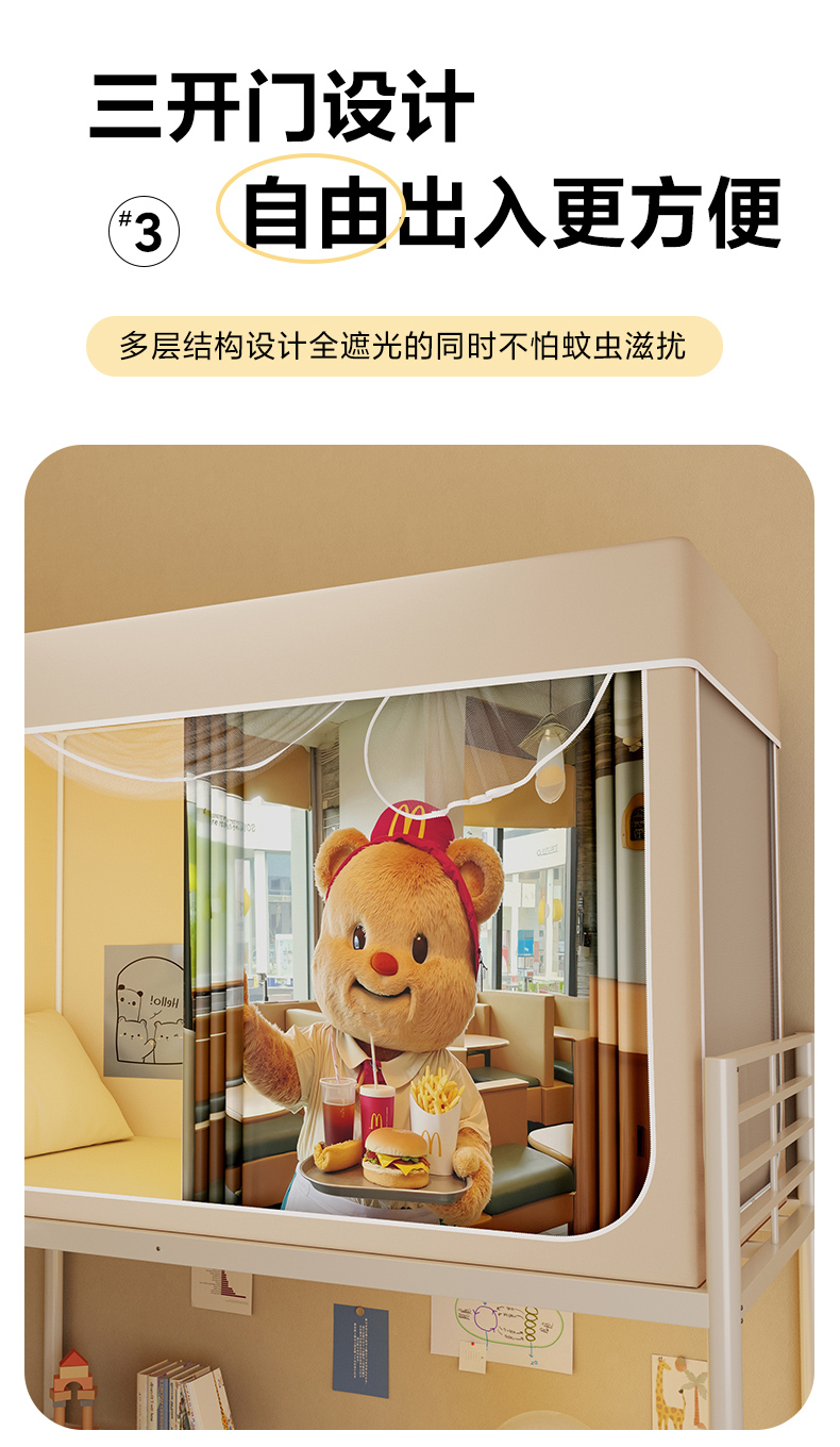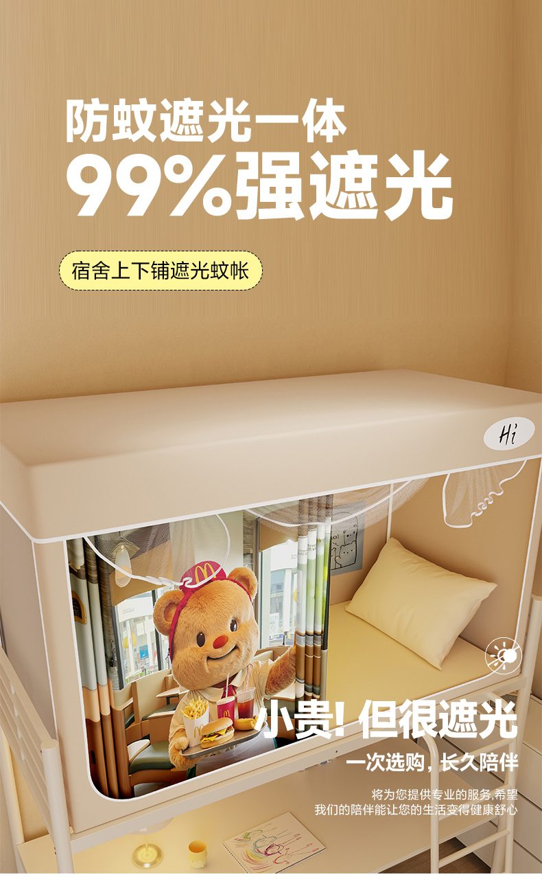 当前位置: 91家纺网 > 商品网购 > 床上用品 > 蚊帐 > 学生蚊帐 > 安金蚊帐2025新款防蚊遮光一体99%强遮光学生宿舍上下铺遮光学生蚊帐-卡其系列 当当熊