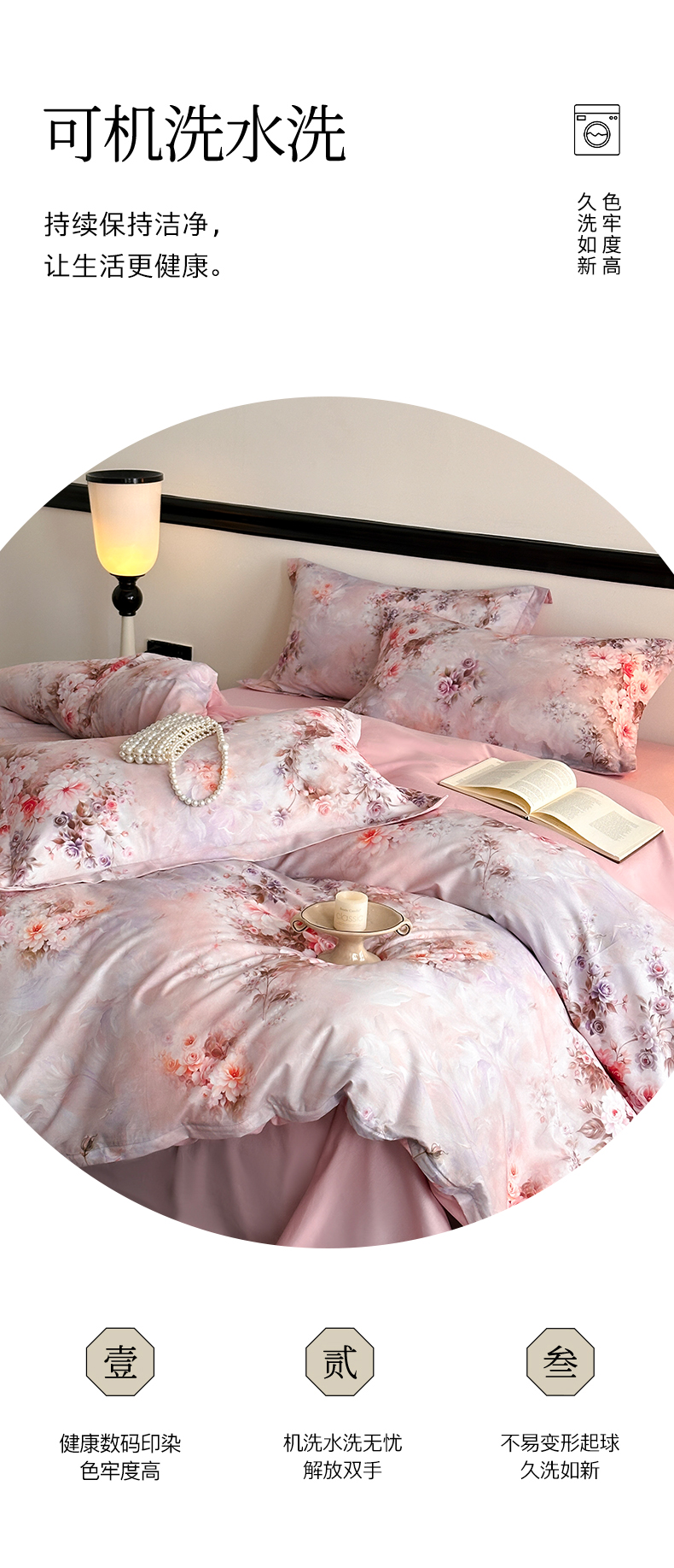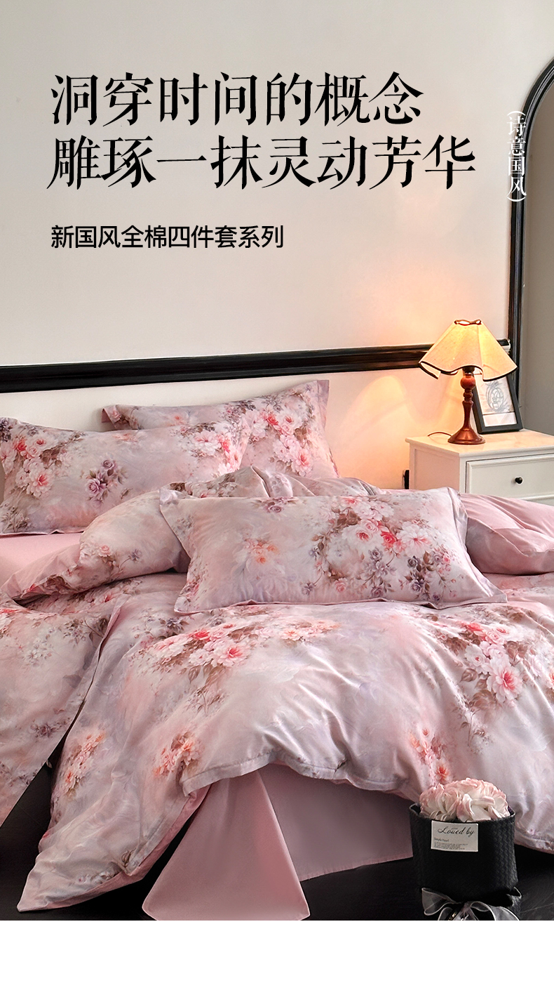 当前位置: 91家纺网 > 商品网购 > 床品套件 > 四件套 > 全棉普通四件套 > 金鑫汇家纺 2025新款13372全棉纯棉高端数码印花四件套 轻梦花海-粉