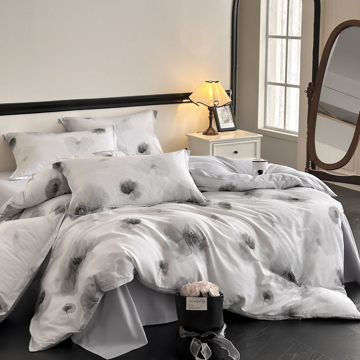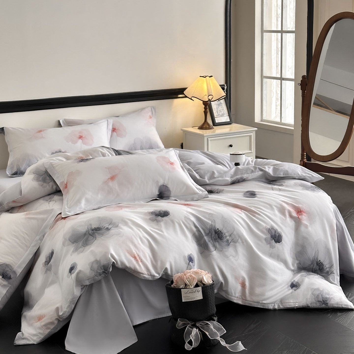 金鑫汇家纺 2025新款13772全棉纯棉高端数码印花单被套 被套单件 木槿-灰
