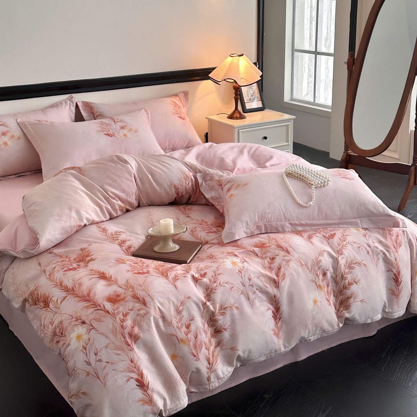 (总)金鑫汇家纺 2026新款全棉印花小清新四件套系列-可露丽,海盐可露丽,浅咖可露丽,浅绿可露丽,月下花影-桔,月下花影-蓝,月下花影-绿