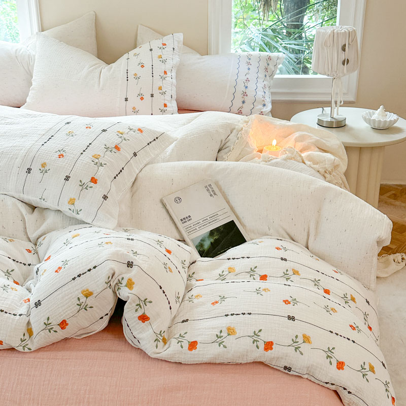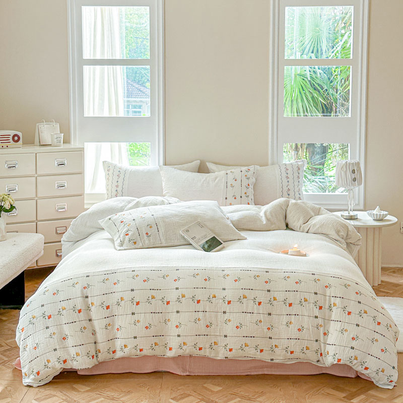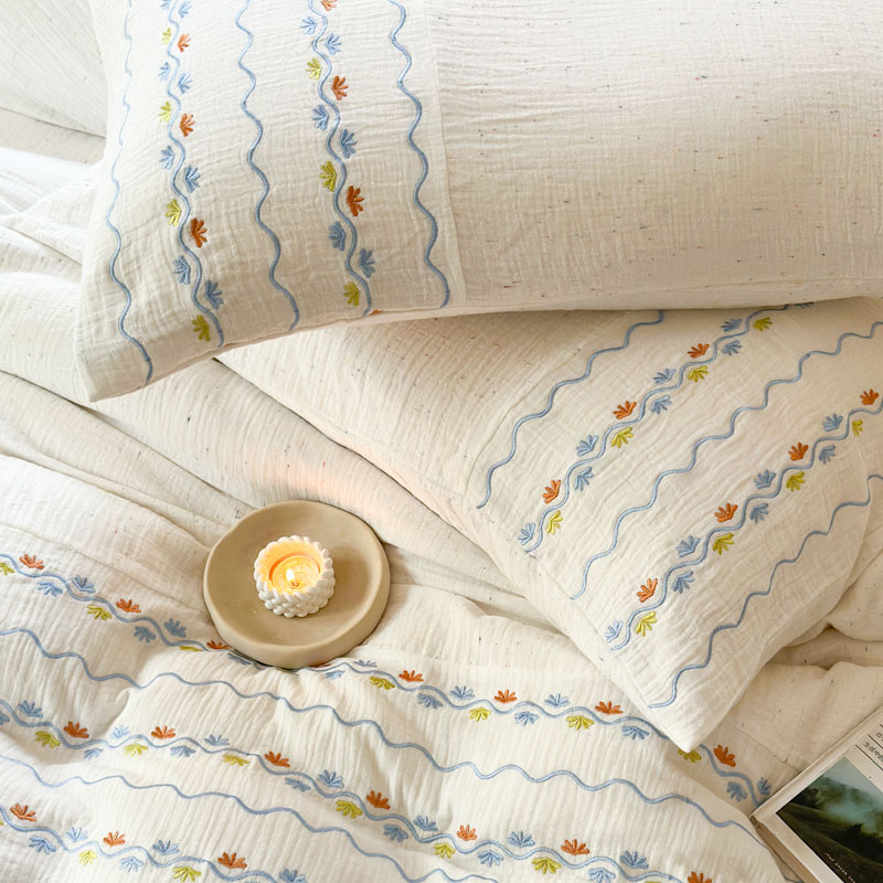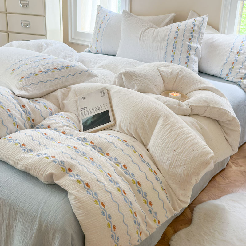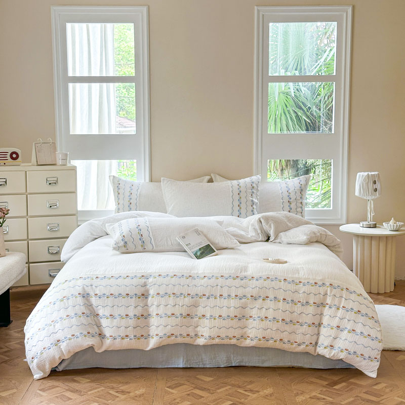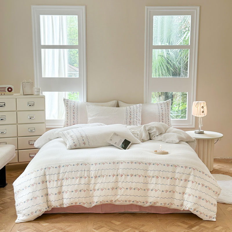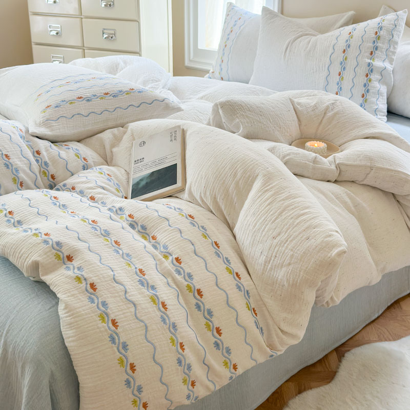 当前位置: 91家纺网 > 商品网购 > 床品套件 > 四件套 > 全棉普通四件套 > (总)木楌家居2025新款全棉彩点皱皱纱绣花四件套