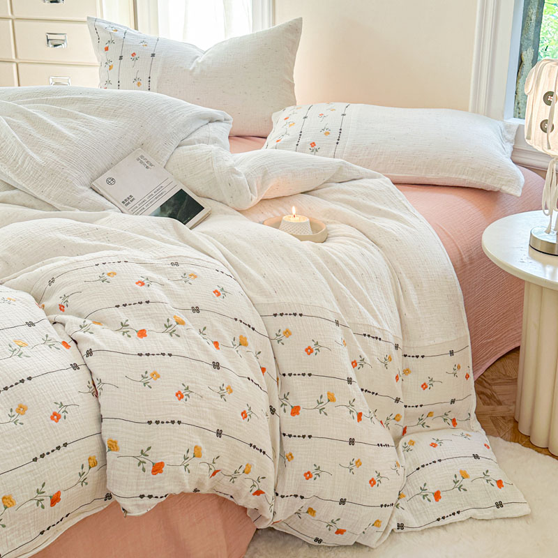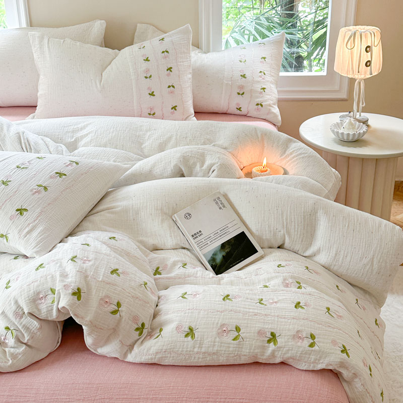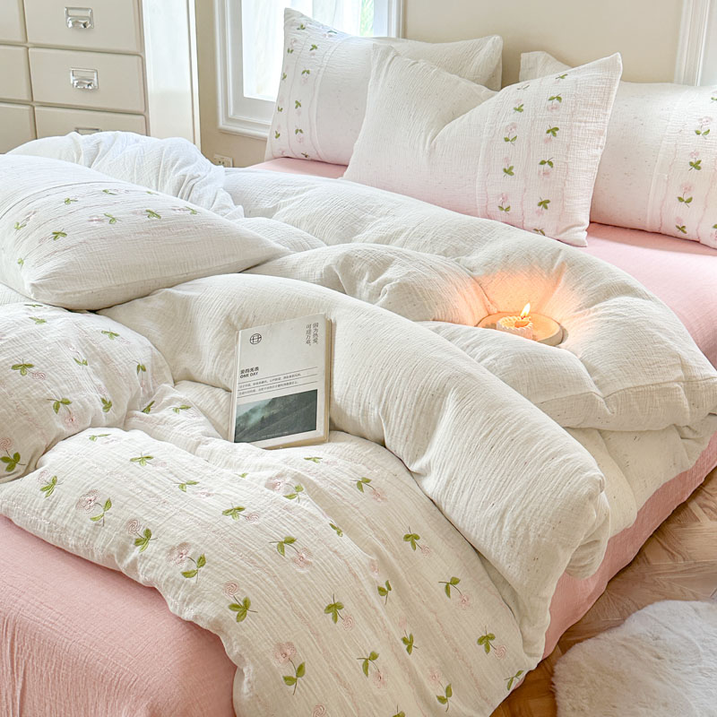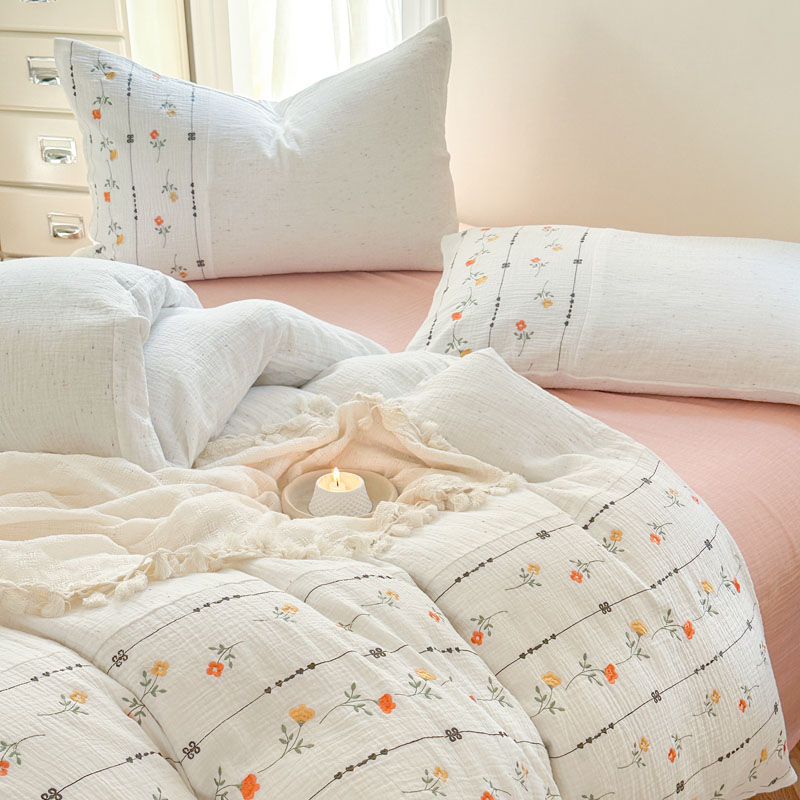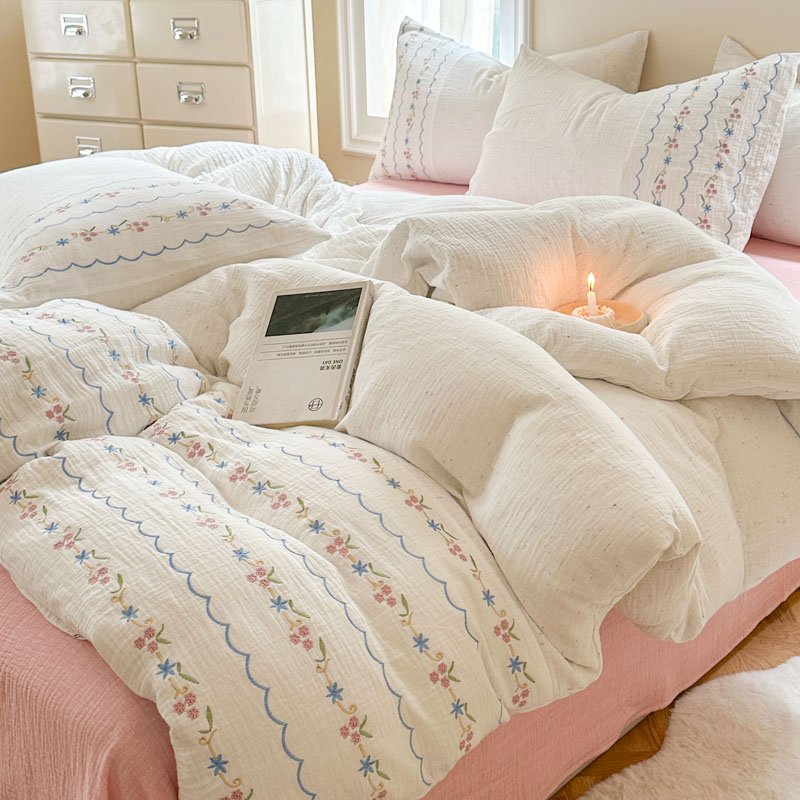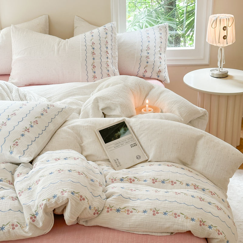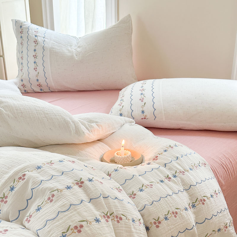 当前位置: 91家纺网 > 商品网购 > 床品套件 > 四件套 > 全棉普通四件套 > (总)木楌家居2025新款全棉彩点皱皱纱绣花四件套