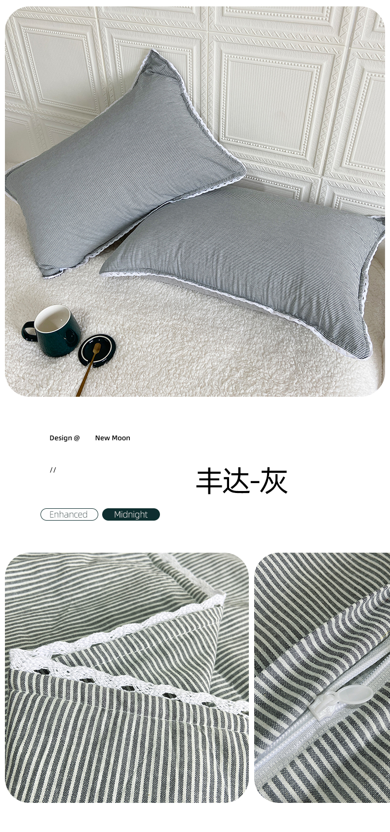 商品名称:卡奥家纺 2025新款A类纯棉色织枕套单枕套枕套单件 丰达-灰