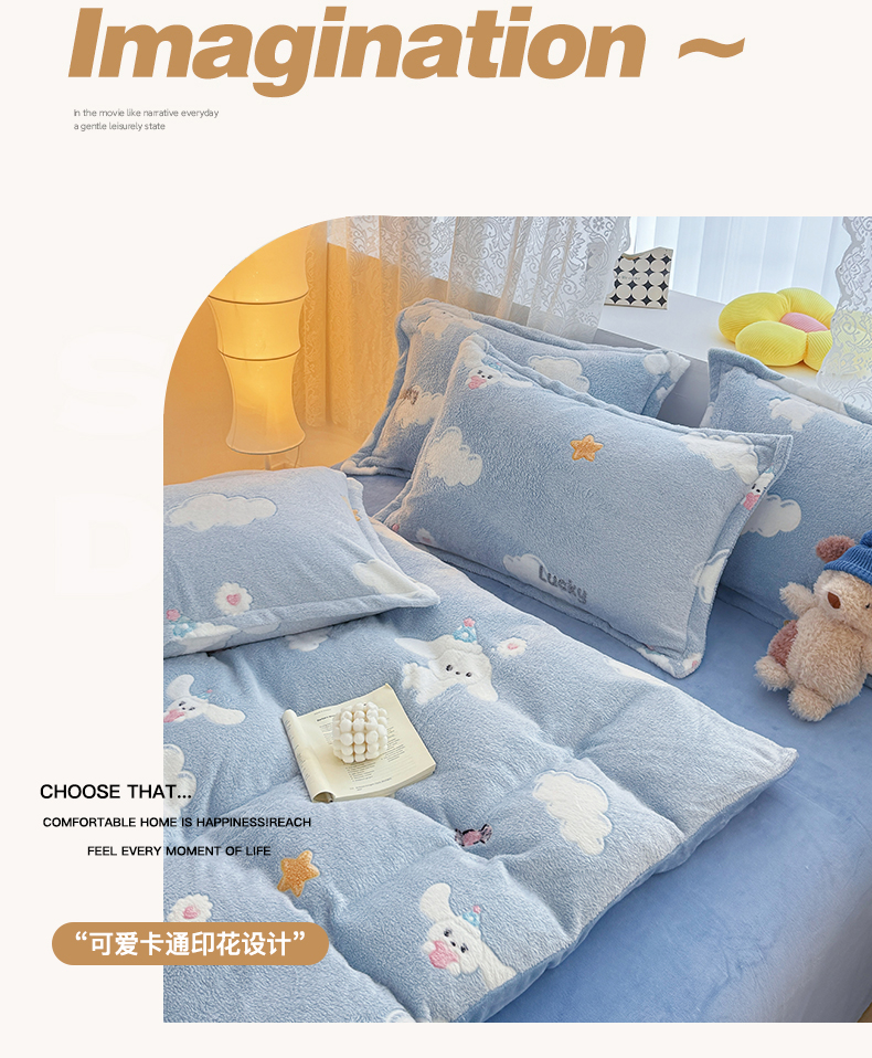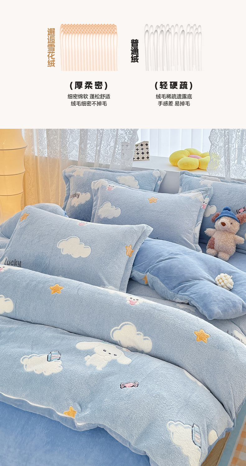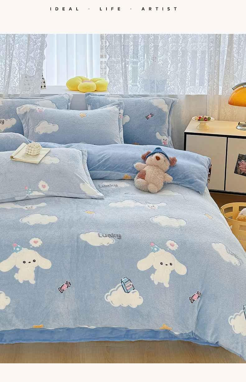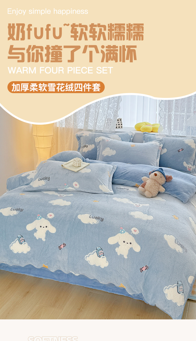 曼町家居 2025新款雪花绒四件套 蓝色大耳狗