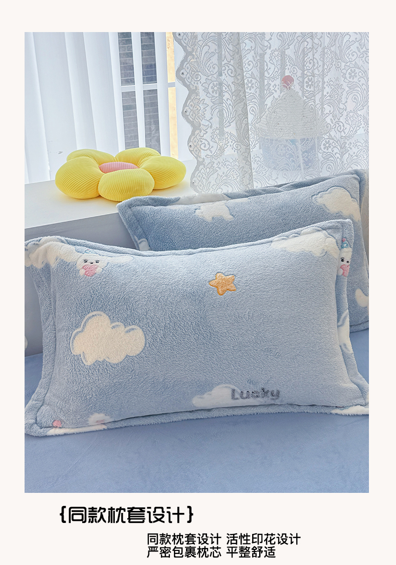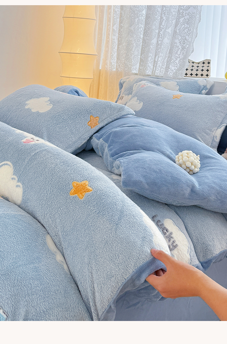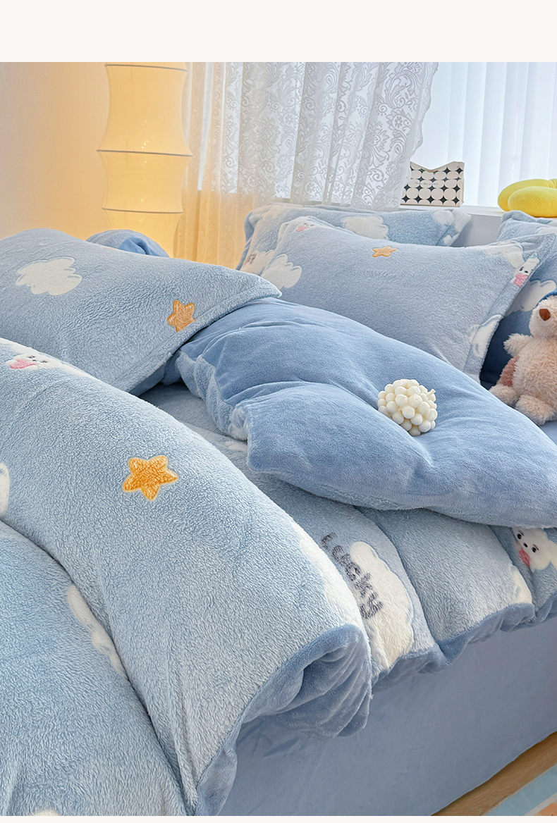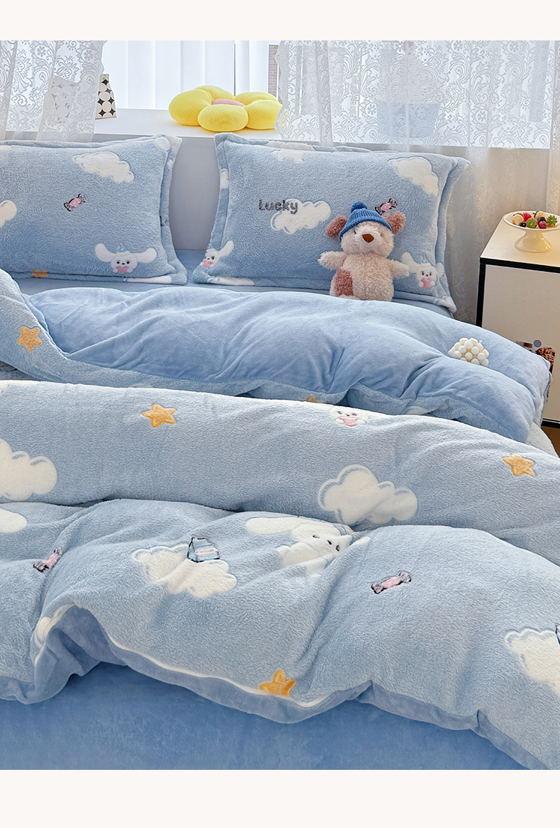 曼町家居 2025新款雪花绒四件套 蓝色大耳狗