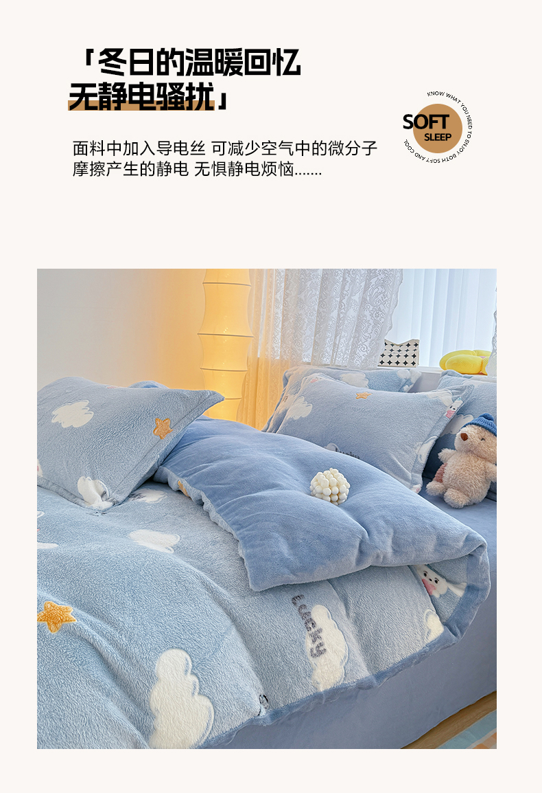 商品名称:曼町家居 2025新款雪花绒四件套 蓝色大耳狗