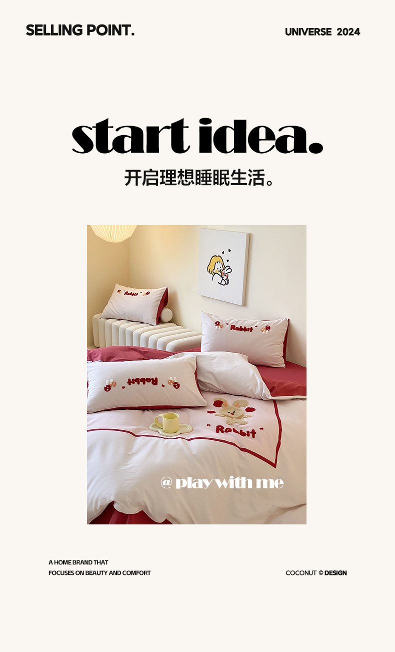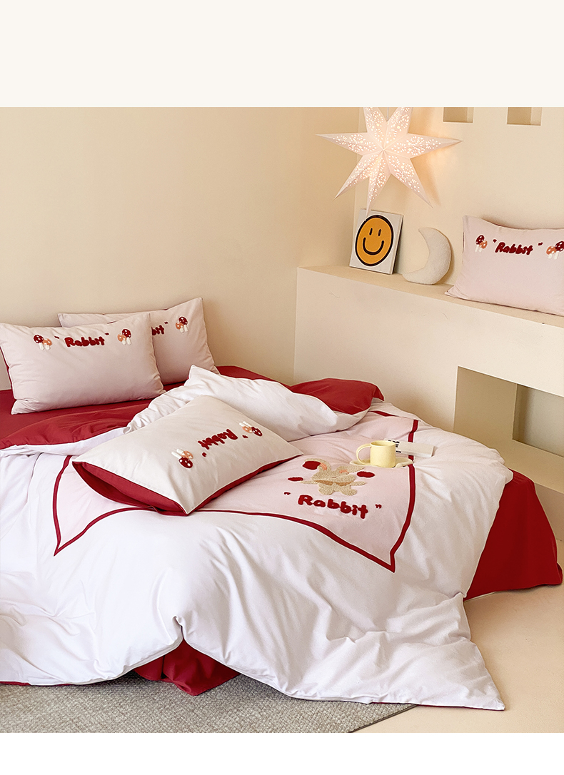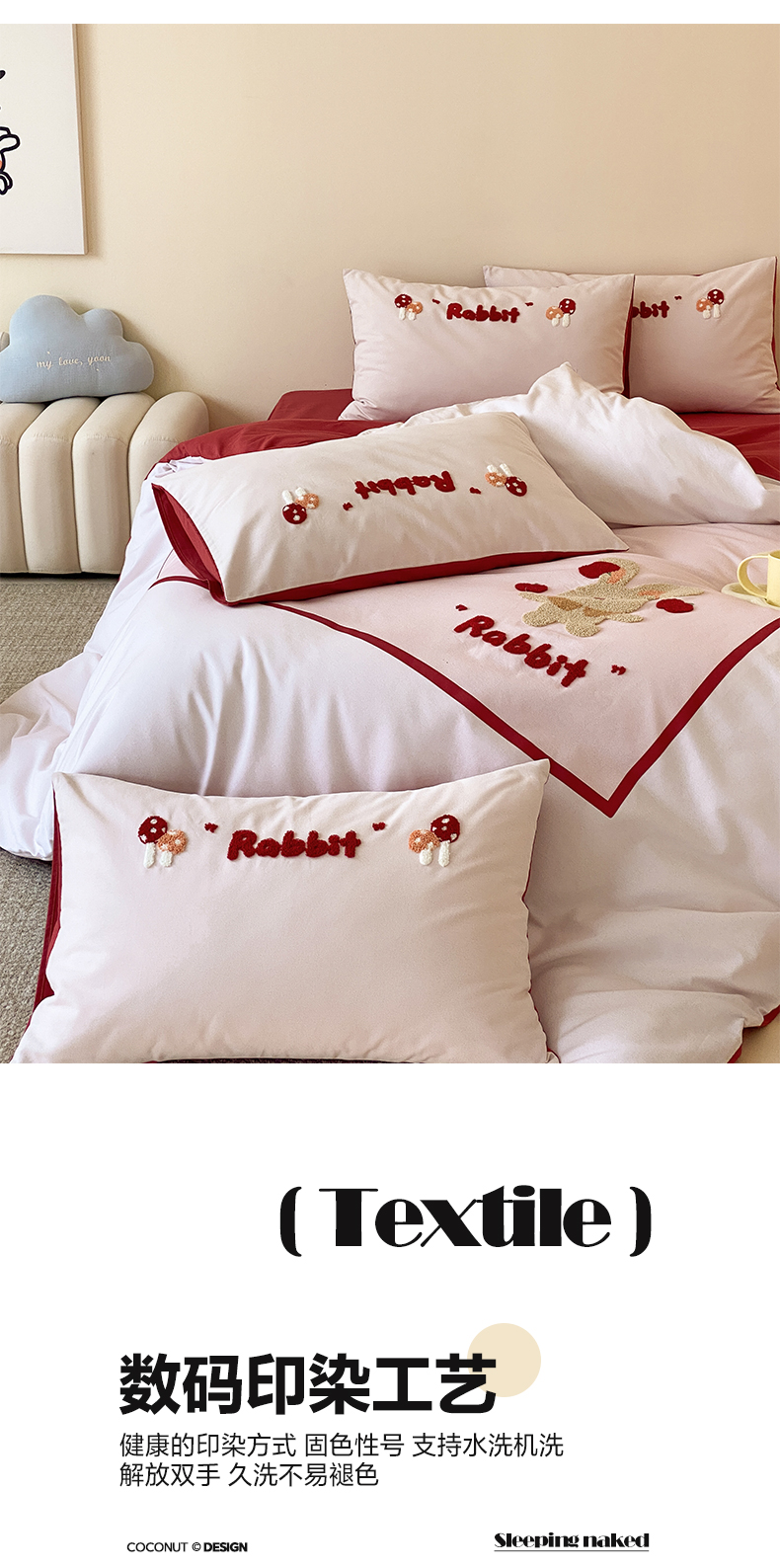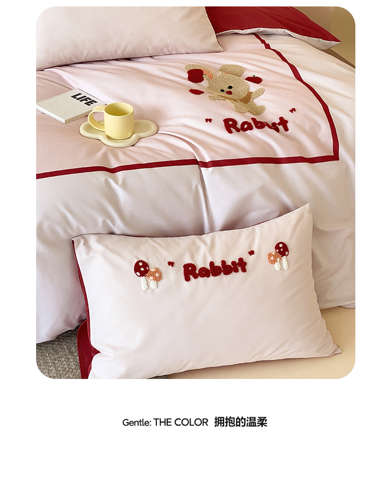 商品名称:麦田家纺 2025秋冬新款加厚磨毛大版毛巾绣四件套-提供买家秀 杂耍兔