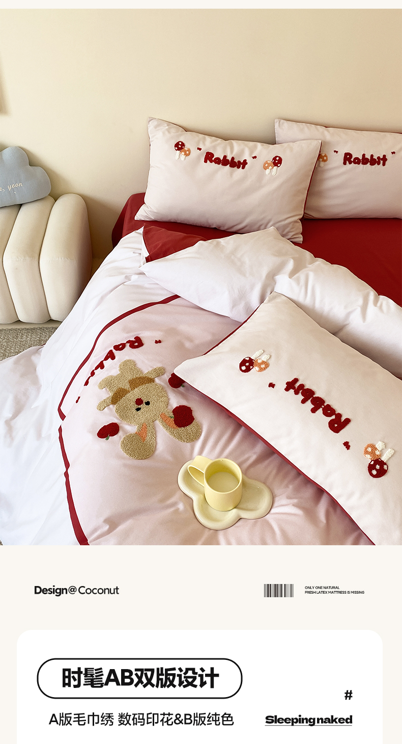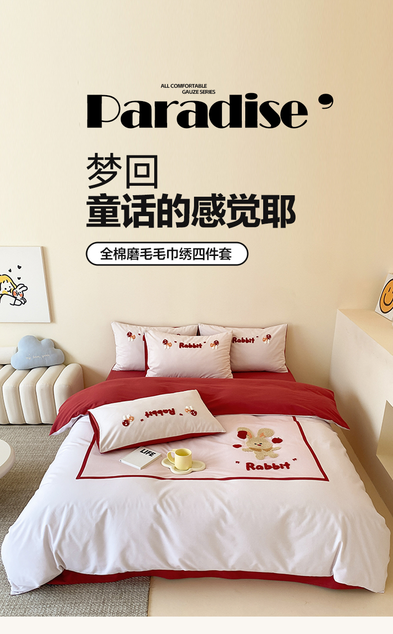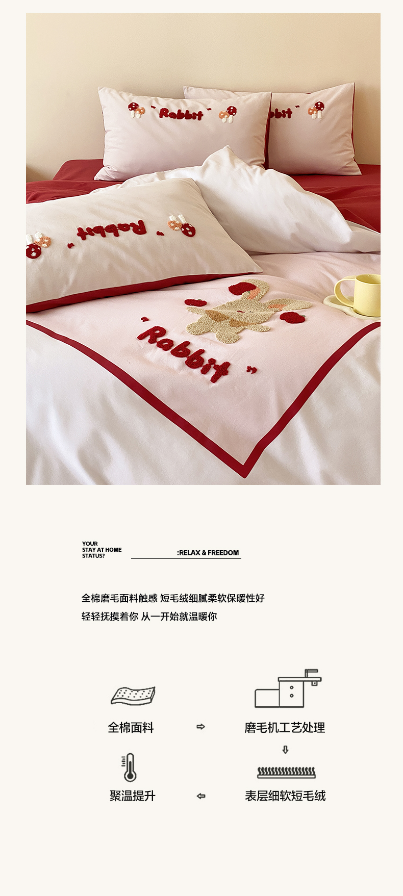 麦田家纺 2025秋冬新款加厚磨毛大版毛巾绣四件套-提供买家秀 杂耍兔