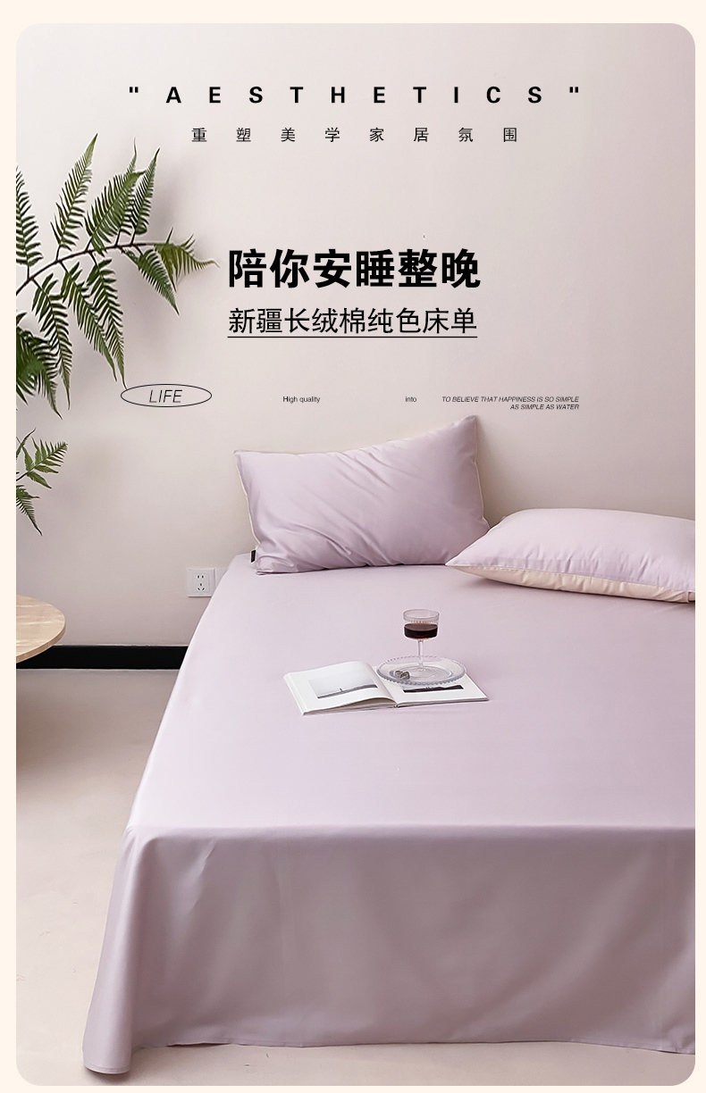 云栖家居 2025新款全棉纯色长绒棉纯棉单品系列床单单件床单单品-单床单 棠梨紫