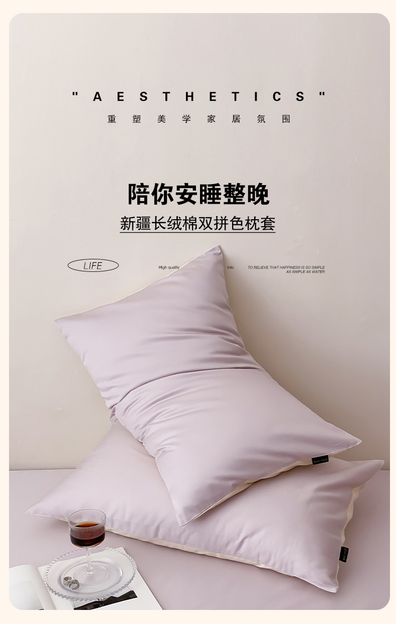 云栖家居 2025新款全棉纯色长绒棉纯棉单品系列枕套单件枕套单品-单枕套 棠梨紫&米粒碎